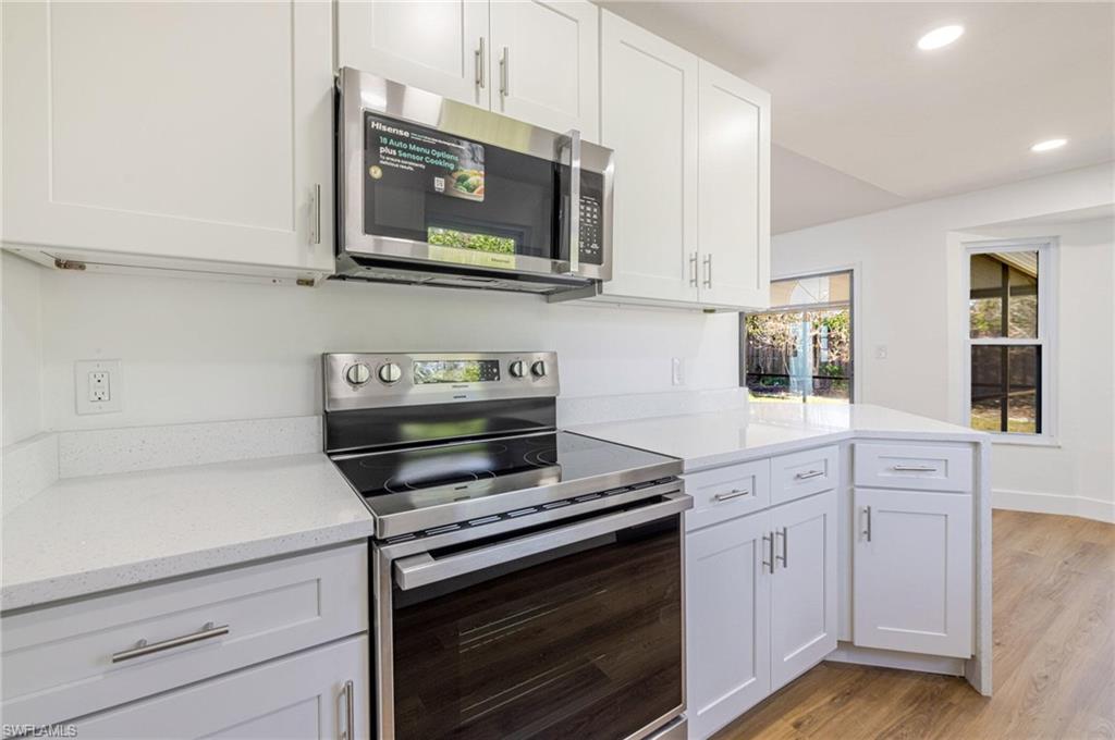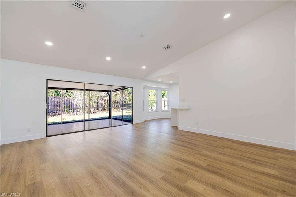 One or more photo(s) has been virtually staged, AI generated or rendered. Exceptionally renovated Naples residence with NO HOA- Ideally situated in a prime central locationu2014just minutes from pristine Gulf beaches, scenic marinas, world-class shopping (5 mins from Waterside Shops), and premier golf courses.This move-in-ready home has been meticulously upgraded, featuring a newer metal roof, brand-new A/C system, luxury vinyl flooring, and soaring vaulted ceilings complemented by designer accent walls with large windowsu2014creating a light-filled, sophisticated living environment. A spacious two-car garage provides both convenience and ample storage.The chef-inspired kitchen is a true focal point, showcasing elegant bay windows, stainless steel appliances, a striking quartz waterfall countertop, and a full-height designer backsplash.Retreat to the refined primary suite, complete with a spacious walk-in closet and a fully renovated spa-like en-suite bath featuring a beautifully tiled walk-in shower and curated modern fixtures. Thoughtful upgrades continue throughout the home, offering a cohesive, turnkey experience.Outdoor living is equally inviting with a newly screened-in Florida room overlooking a private, fully fenced backyard, enhanced by lush, blossomed Florida landscapingu2014grreat for relaxing or entertaining in style.Freshly painted inside and out, this exceptional property presents a rare opportunity as a full-time residence, luxurious seasonal retreat, or high-performing investment.