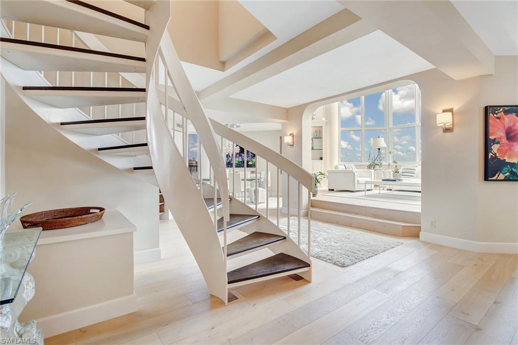 Live above it all at the penthouse level of The Savoy Condominium in beautiful Naples.This rare two-level residence offers 2 bedrooms, 2.5 bathrooms, and breathtaking Gulf, bay, and city views from nearly every room. The unique multi-level design creates both drama and privacy, giving the home a true coastal retreat feel while offering ideal separation between living and sleeping areas.Wake up to stunning sunrises over the bay and unwind with glowing sunsets over the Gulf. The expansive layout allows you and your guests to move comfortably without ever feeling crowded.Residents of The Savoy enjoy resort-style amenities including a beachfront pool and fitness center, pickleball, bocce, tennis, social room, reading lounge, gazebo, outdoor grills, and dual Gulf-front sundecks. A staffed gatehouse provides privacy and security.Perfectly positioned directly across from The Village Shops on Venetian Bay, offering waterfront dining and upscale shopping just steps away.Location. Views. Lifestyle.