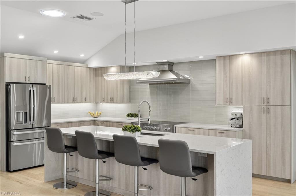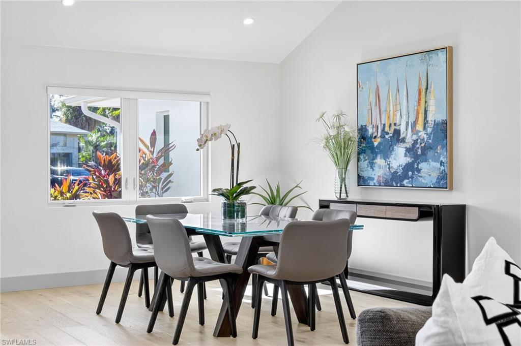 Welcome to 5215 Seashell Avenue in the highly coveted waterfront enclave of Seagate. Tucked away at the end of a quiet cul-de-sac surrounded by high-end homes is this 4 Bedroom/3 Bathroom waterfront home with 110 feet of canal frontage.This exceptional home was thoughtfully redesigned by renowned local architect, MHK Architects, and was completely renovated inside and out in 2023.This home boasts a light and airy mid-century contemporary flair inspired by California ranch-style architecture.Enter into an open-concept living space with spacious living room replete with vaulted ceilings, wide plank light oak hardwood floors and dramatic contemporary accent wall. Wall of glass opens to the rear outdoor space seamlessly blending indoor/outdoor living.A true chef's eat-in kitchen features sleek European-style flat panel cabinetry, oversized island with waterfall edges, stainless steel appliances, bar area plus lovely dining room ideal for entertaining.Master suite oasis with spacious bedroom with contemporary accent wall, walk-in closet with custom built-ins and a spa-like en-suite bath with custom double vanity, step-in shower, freestanding soaking tub and separate water closet. Split floor plan with 2 additional guest bedrooms with full baths plus a 4th bedroom currently set up as an office/media room. Convenient laundry room with great storage. 2-car attached garage with epoxy floor.Outdoor resort-style private oasis with covered living and dining area, TV, gorgeous pool and spa plus a canal front patio with firepit. A boater's dream with direct water access and a floating dock.Optional Seagate Beach Club membership offers private beachfront access.Truly exceptional and a great value for this highly desirable neighborhood.Easy access to schools, Waterside Shops, downtown Naples, I-75 as well as Naples and Fort Myers airports.