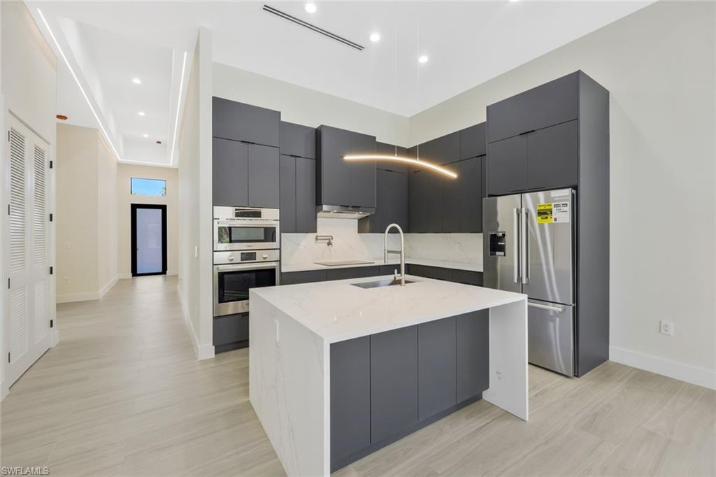 Experience elevated living in this modern Construction home featuring soaring 14-foot ceilings and a sleek, open layout. The kitchen is a true showstopper, outfitted with premium Bosch appliances and contemporary cabinetry that combines style and functionality. Located on a street undergoing a remarkable transformation with multiple new builds, this home offers a unique opportunity to be part of a rapidly evolving neighborhood. Just minutes from Waterside Shops and only 10 minutes to the beach, the location is ideal for convenience and lifestyle. Enjoy Florida living at its finest with a heated, saltwater pool and a fully equipped outdoor kitchen perfect for relaxing or entertaining year-round.