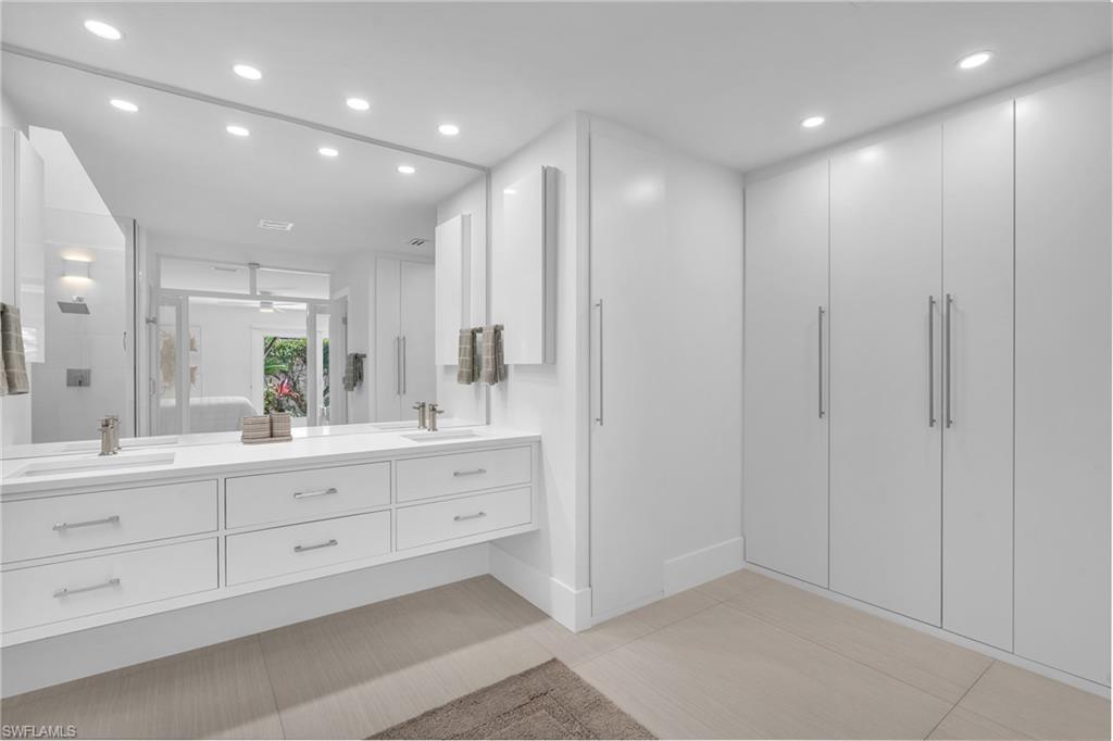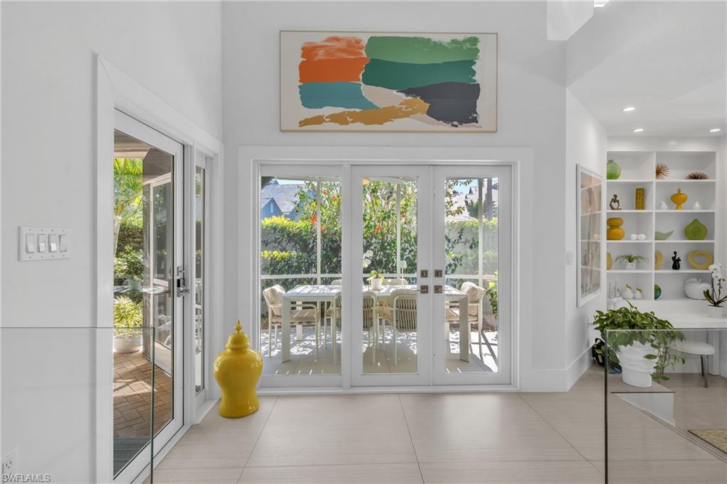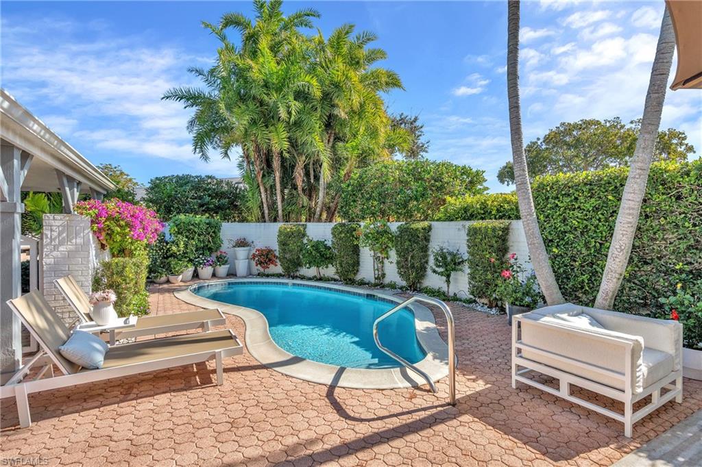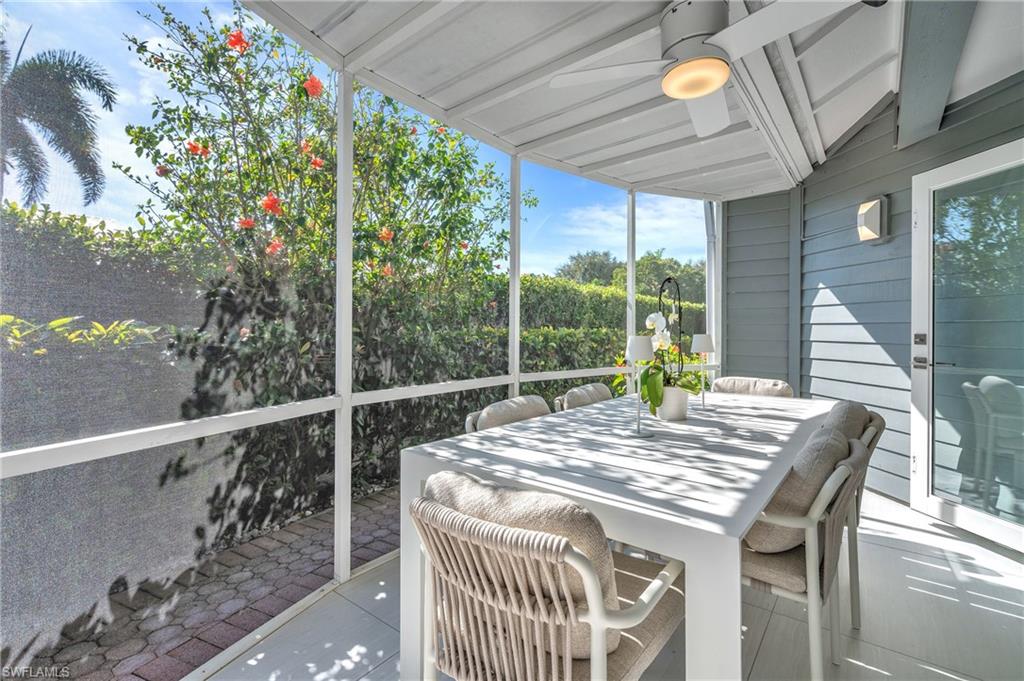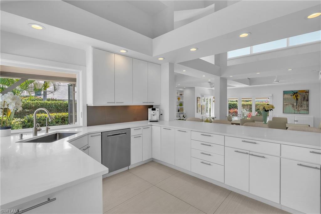 Enchanting Courtyard Entry Villa in Pelican Bay. This pristine, split 2-bedroom, 2-bath corner unit lives like a single-family home, with privacy, plenty of open sky and lush foliage views. A peaceful oasis, just steps from Artis Naples and the dining and shopping options of Waterside Shops. A comprehensive 2023-2024 renovation brings soaring ceilings and walls of glass that flood the home with natural light. The design aesthetic is clean lines and a neutral palette. A perfect backdrop for any du00e9cor. The kitchen boasts extensive wood cabinetry, quartz counters, stainless steel appliances and a panelized refrigerator. Thermador induction cooktop and a convection oven make precision cooking easy and enjoyable. Designed for modern living, this home has abundant closet and storage space with interior drawers and slide-out shelves to optimize organization. The open floor plan makes entertaining easy. The kitchen connects seamlessly to both indoor and outdoor entertaining areas. Guests can sit at the counter and engage with the host during meal prep. Dining options are inside, outside, or in the screened lanai overlooking the courtyard. The living room features sliders to a rear patio, a custom bookcase and custom TV cabinet that conceals the television. The primary bedroom suite at the rear of the home, provides a tranquil sanctuary for when the guests are gone. Glass doors separate the bedroom from a spa-like bath and dressing area, which includes 15 linear feet of custom closets and a large double vanity. The natural light from the skylight is reflected in the oversized mirror. A separate water closet is equipped with a Toto toilet and washlet. The guest bedroom holds a king bed, opens beautifully to the courtyard and has 13 feet of custom closets. Both bathrooms boast floating vanities, frameless glass showers, designer tile and Signature Hardware brushed steel faucets and accessories. A cleverly designed office nook conceals a stackable LG washer and dryer and closet. The seamless connection between interior and exterior spaces really enhances the homeu2019s entertaining capabilities. The private pool courtyard provides ample space for sunbathing and gathering, in complete privacy, thanks to a five-foot white brick wall and mature foliage. The final project (May 1 -June 1) will expand the patio seating area, reconfigure the steps and install new 24x24 outdoor porcelain tile and epoxy garage flooring. After that, there is nothing left to do. Pelican Bay is resort-style living with unmatched amenities along the amazing Naples coastline. Residents enjoy tram service to three miles of private beach, chair and umbrella service, two beachfront restaurants, state-of-the-art fitness, wellness, tennis, pickleball, scenic walking and biking paths and more. Bridgeway Villas is a unique community in Pelican Bay, reminiscent of summers on Cape Cod. Need more Room? ASK US ABOUT AN OPTION TO ADD A LOFT!
