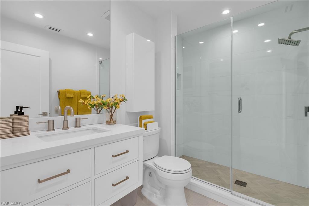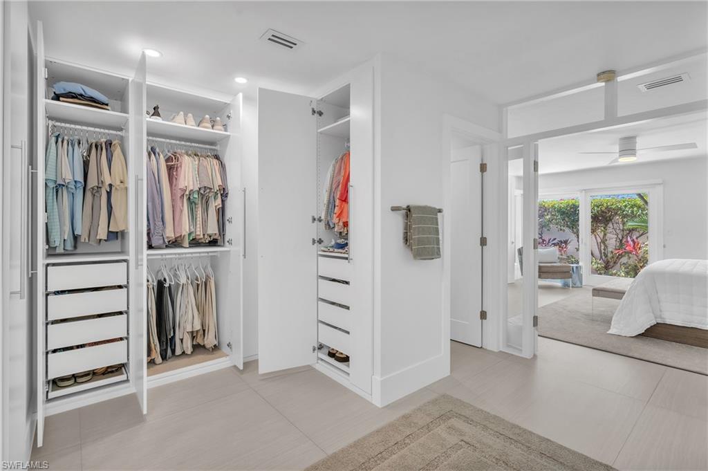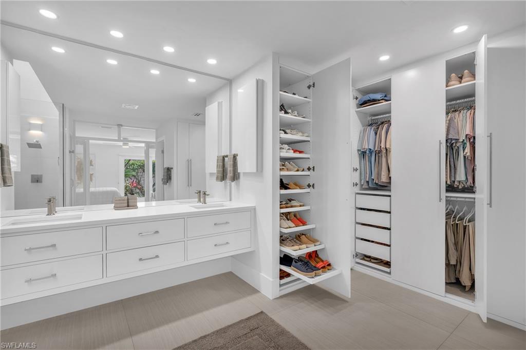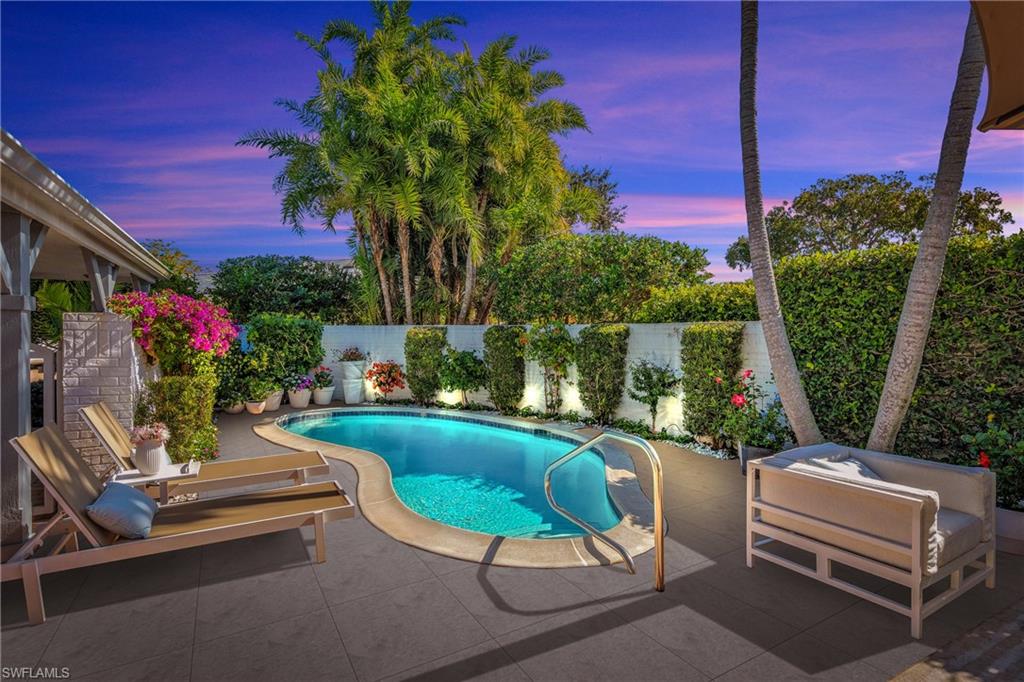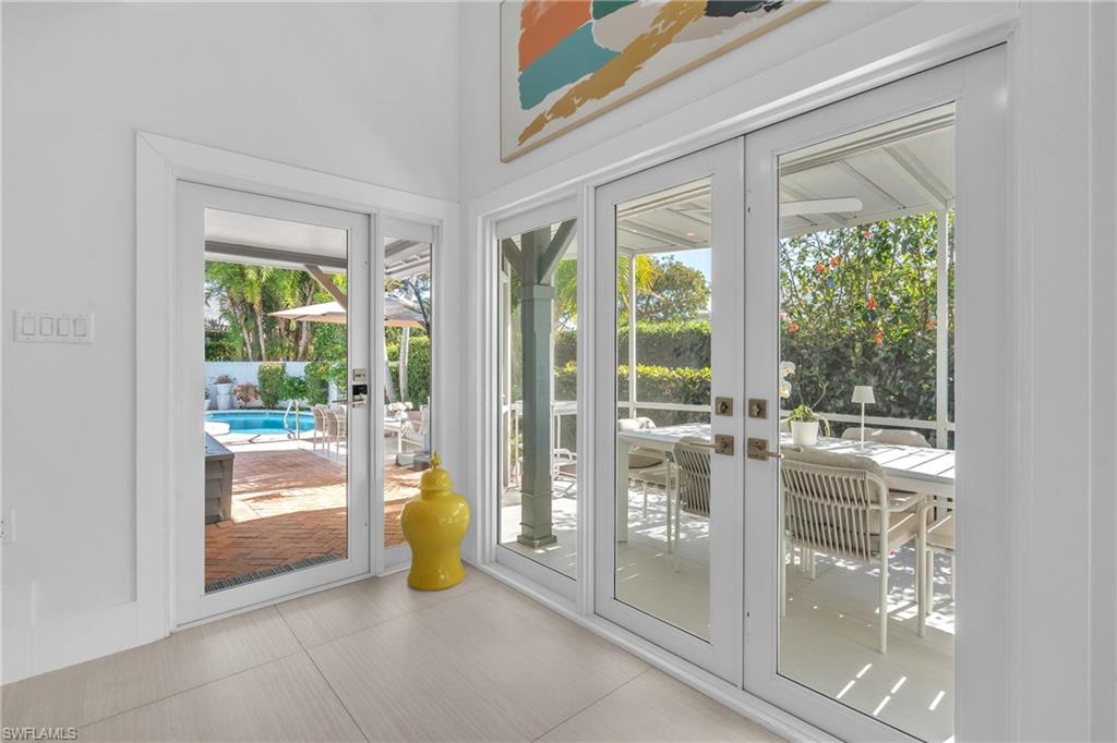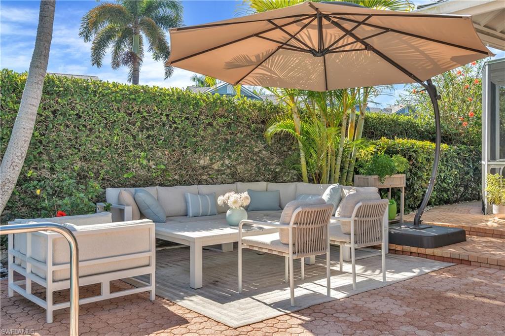 Enchanting Courtyard Entry Villa in Pelican Bay. This pristine, split 2-bedroom, 2-bath corner unit lives like a single-family home, with privacy, plenty of open sky and lush foliage views. A peaceful oasis, just steps from Artis Naples and the dining and shopping options of Waterside Shops. A comprehensive 2023-2024 renovation brings soaring ceilings and walls of glass that flood the home with natural light. The design aesthetic is clean lines and a neutral palette. A perfect backdrop for any du00e9cor. The kitchen boasts extensive wood cabinetry, quartz counters, stainless steel appliances and a panelized refrigerator. Thermador induction cooktop and a convection oven make precision cooking easy and enjoyable. Designed for modern living, this home has abundant closet and storage space with interior drawers and slide-out shelves to optimize organization. The open floor plan makes entertaining easy. The kitchen connects seamlessly to both indoor and outdoor entertaining areas. Guests can sit at the counter and engage with the host during meal prep. Dining options are inside, outside, or in the screened lanai overlooking the courtyard. The living room features sliders to a rear patio, a custom bookcase and custom TV cabinet that conceals the television. The primary bedroom suite at the rear of the home, provides a tranquil sanctuary for when the guests are gone. Glass doors separate the bedroom from a spa-like bath and dressing area, which includes 15 linear feet of custom closets and a large double vanity. The natural light from the skylight is reflected in the oversized mirror. A separate water closet is equipped with a Toto toilet and washlet. The guest bedroom holds a king bed, opens beautifully to the courtyard and has 13 feet of custom closets. Both bathrooms boast floating vanities, frameless glass showers, designer tile and Signature Hardware brushed steel faucets and accessories. A cleverly designed office nook conceals a stackable LG washer and dryer and closet. The seamless connection between interior and exterior spaces really enhances the homeu2019s entertaining capabilities. The private pool courtyard provides ample space for sunbathing and gathering, in complete privacy, thanks to a five-foot white brick wall and mature foliage. The final project (May 1 -June 1) will expand the patio seating area, reconfigure the steps and install new 24x24 outdoor porcelain tile and epoxy garage flooring. After that, there is nothing left to do. Pelican Bay is resort-style living with unmatched amenities along the amazing Naples coastline. Residents enjoy tram service to three miles of private beach, chair and umbrella service, two beachfront restaurants, state-of-the-art fitness, wellness, tennis, pickleball, scenic walking and biking paths and more. Bridgeway Villas is a unique community in Pelican Bay, reminiscent of summers on Cape Cod. Need more Room? ASK US ABOUT AN OPTION TO ADD A LOFT!