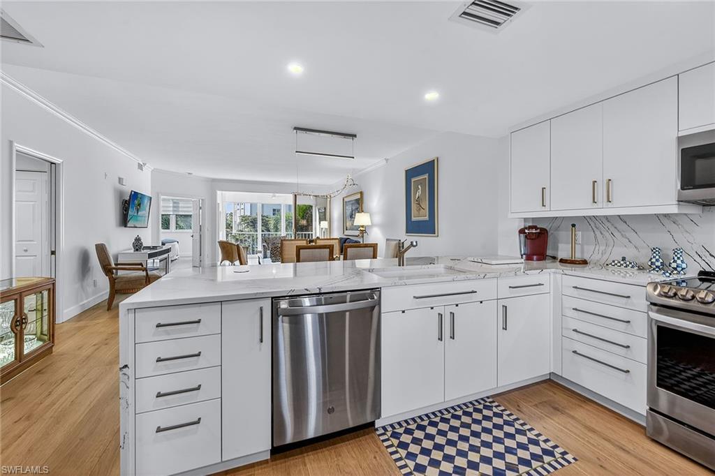 Welcome to St. Vincentu2019s at Crown Colony, one of Pelican Bayu2019s most prestigious and sought-after enclaves. This fully renovated two-bedroom, two-bath residence is offered turnkey, showcasing top-of-the-line finishes and appliances, designer furnishings and an effortless move-in experience. Enjoy peace of mind with impact-resistant windows and doors, and savor beautiful sunsets with west-facing views. In a gated community with 24/7 guard service, this property offers exceptional security and privacy. Positioned for ultimate convenience, the home is just a short distance to two Pelican Bay tram stations and the South Tennis Courts, placing world-class amenities right at your fingertips. Additional features include one deeded parking space, a large private storage closet and access to the community pool, ideal for relaxing under the Florida sun. Pelican Bay offers world-class amenities including two private beach clubs with beach attendants and restaurants, a tram system for easy transport to the beach, a state-of-the-art fitness center, tennis and pickleball courts, kayaking and paddle boarding, scenic walking paths and group events, activities and clubs. A quick visit to Artisu2013Naples and Waterside Shops, and only a short drive to Fifth Avenue or Mercato, this community is well-positioned for ease and social activity.
