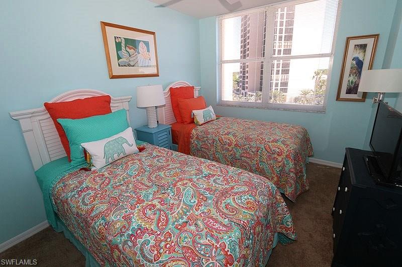 Spectacular sunsets nightly! Fabulous unobstructed Gulf and bay views from this fifth floor end unit residence in one of Pelican Bay's most primely located residential high-rise buildings. Overlooking the wildlife sanctuary of Outer Clam Bay and the sparkling Gulf of Mexico, this meticulously maintained residence is decorated in an inviting Florida style decor scheme of inviting warm colors and boasts two balconies (one screened) to enjoy endless water and preserve views. A south end building location guarantees a light & bright sunny exposure. Sofa, two chairs, a chaise and four person card table in the living room. The wood dining room table seats six plus there are two bar stools at the breakfast bar. Furnished with every creature comfort to make a tenant's stay more convenient and enjoyable. Amenities to St. Nicole include a heated pool and spa, exercise room, social rooms and on-site manager. Enjoy the world class amenities of Pelican Bay including two private casual beachfront restaurants, beach shuttle, beach chair & umbrella set-up service, tennis club (pay per play), community fitness center, walking trails and more.