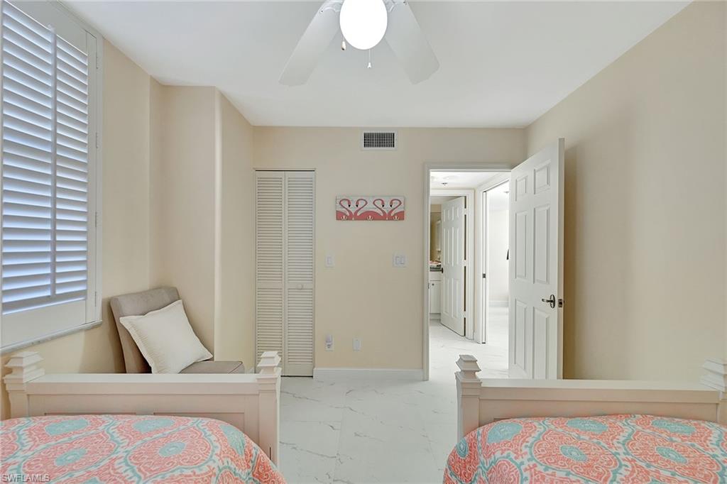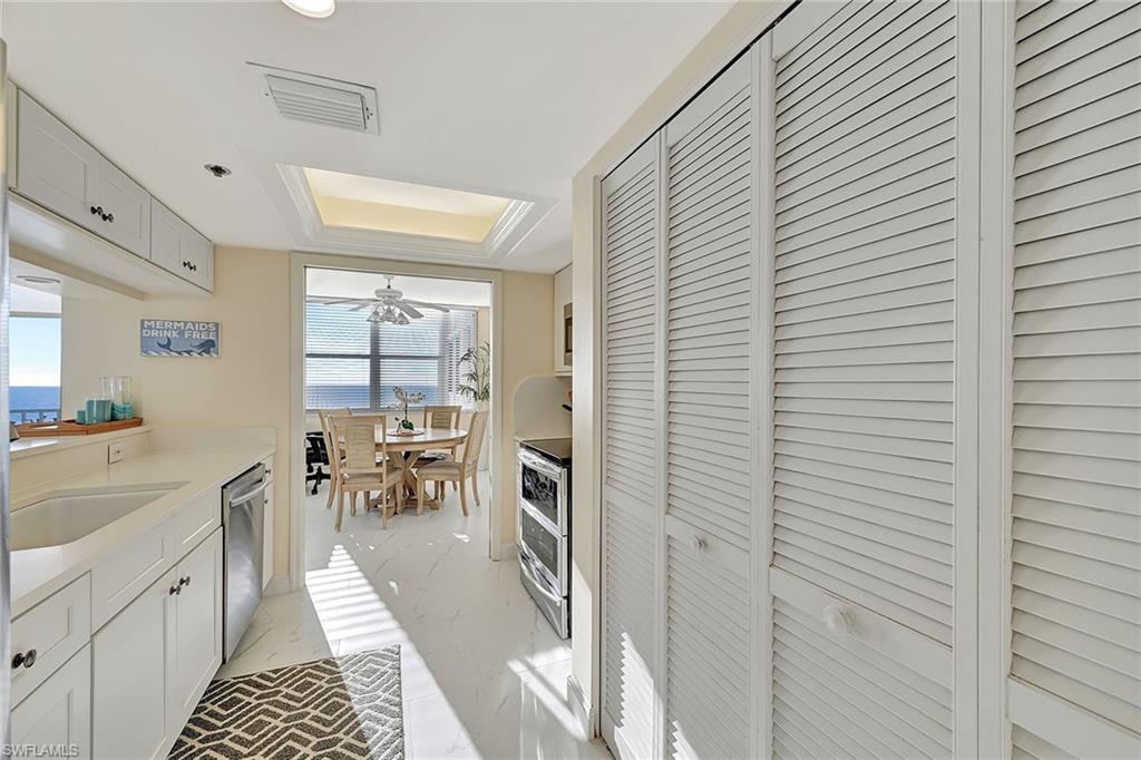 Nothing says `Naples` like Pelican Bay - especially St. Nicole with the beach shuttle at it's back door! This 18th floor beauty sits perfectly perched to enjoy stunning views over the Gulf of Mexico and Clam Pass with front row seats to Naples' spectacular sunsets. . Want your toes in the sand? Either walk or catch the community tram that picks you up right from your building, winding you down the boardwalk and through the mangroves to one of two private beaches - exclusive to Pelican Bay residents and their guests. Once there you can enjoy beach chair & umbrella service, shower& bathroom facilities, picnic pavilions and 2 exclusive beachfront restaurants. This lovely 2 bedroom 2 bath retreat offers an open great room and kitchen decorated with a coastal flair. Floor to ceiling glass sliding doors open to both a screened balcony and an open terrace. Building amenities include: tropical pool & spa with BBQ grills, fitness facility, social room with kitchen, theater room, billiard room, guest suites, and secured building entry. St. Nicole is just a minute from upscale shopping, dining, and entertainment at Waterside Shops, Artis and Mercato. As a Pelican Bay guest, you will also have access to the community center, fitness & wellness studios, a very active tennis pavilion/pro shop, nature trails, fishing, sailing, canoe & kayaking which makes this a prime location for Naples rentals.. Did I mention the view?
