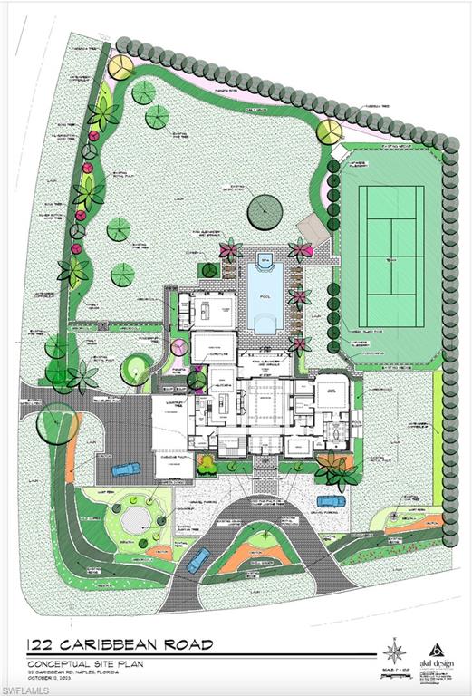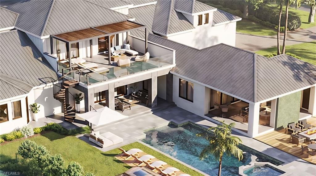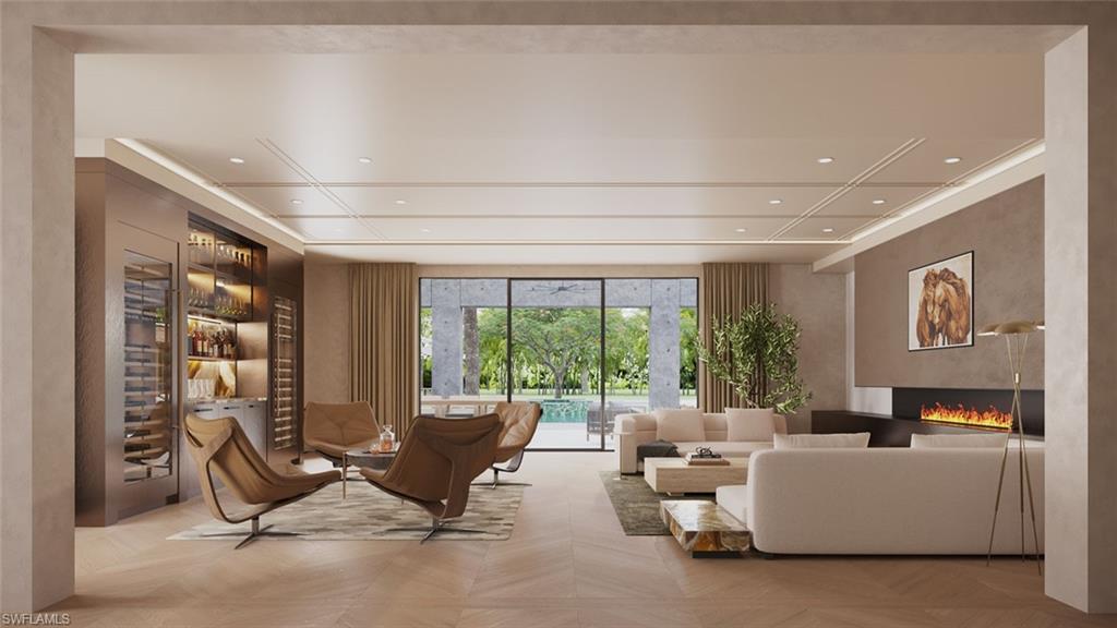 A meticulously curated home with a completion date of mid-2026 on a corner property with land, privacy, mature landmark trees, outdoor living amenities, sophisticated architectural details, and distinctive interior design! The next luxury spec in the portfolio of premier developer R.O.I. Naples, this 6,500-square foot Pine Ridge estate is adorned with majestic and commanding statement trees, like Banyan and Royal Poinciana, which provide the kind of sprawling, sky-reaching canopies only an experienced developer can appreciate when choosing the perfect land. A rare, glass-railed 2nd floor sun deck, flanked by a lit spiral staircase, provides a panoramic birdu2019s-eye view of the tennis court, pool, spa, water feature wall, & fire pit. Set on a private, 1.3-acre oversized corner lot, the property offers exceptional flexibility for outdoor living, recreation, and entertaining all while maintaining a sense of privacy and estate-like scale rarely found in newer developments. Sited & designed at the back of the grounds is an optional 12-Car Collectoru2019s Retreatu2014which would add an additional 5,200 square feet under airu2014a detached, 2-story out building that would increase the total car capacity of the property to 17! The additional ensuite bedroom, gym, sauna, bar and living room is a car aficionadou2019s modern-day man cave. In the main home, Brazilian white oak chevron & plank flooring, water jet marble, limestone, venetian plaster and lime wash wall treatments, and an open tread staircase lined with side walls of unfilled travertine are among the highly unique custom details. Five ensuite bedrooms on 2 stories, an elevator, 2 laundry rooms, a whole-home generator, a 5-car garage within the main home, 2 family rooms, & 2 lanais complete this dream offering. The estate has undergone a comprehensive transformation right down to the studs and was stripped to its core, reconstructed with all-new electrical, plumbing, HVAC, insulation, windows, roofing, interior framing, & structural enhancements. Every major system is new. Fully furnished, including luxury imported brands like Casa Italia, Roche Bobois, and At Faro, the home will be turnkey, move-in ready. Thoughtfully redesigned with a modern, open floor plan, the home features a Control 4 lighting system, home security technology and fully gated/fenced perimeter, and a Sonos sound system. Natural light fills the interiors, while carefully selected finishes and materials reflect a refined, contemporary aesthetic and a nod to midcentury modern. This was not a cosmetic renovation, but a true rebuildu2014executed with intention, precision, and long-term livability in mindu2014and reimagined from the ground up. Photos in this listing contain virtual renderings.