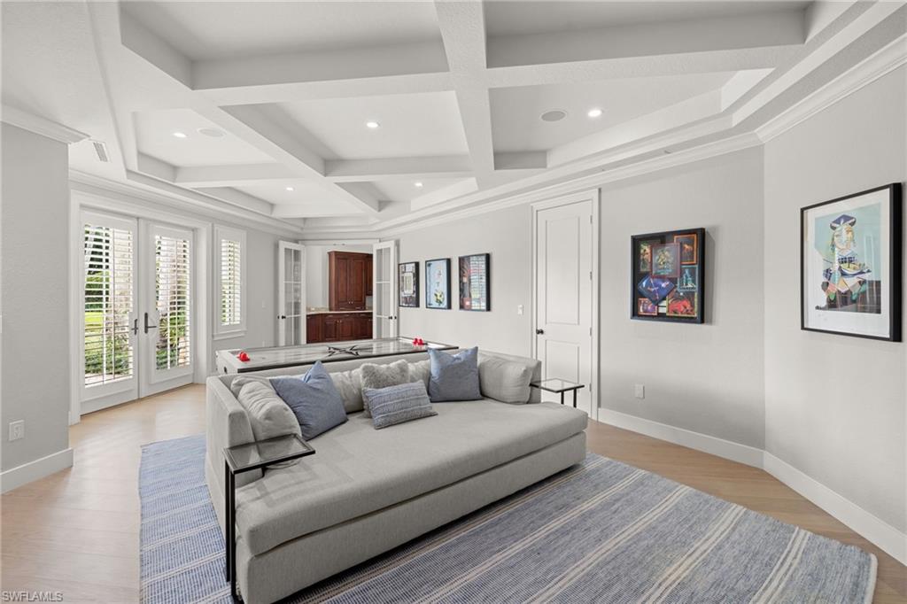 Completely reimagined by BCB Homes, this exceptional 1.3-acre corner property delivers the true essence of luxury living in Pine Ridge. Perfectly oriented to capture sweeping western lake views and spectacular sunsets, the home blends classic architecture with fresh, modern refinement.Inside, the craftsmanship is undeniableu2014two fireplaces, wide-plank engineered hardwood, and thoughtfully placed marble and tile accents set a warm, elevated tone. Lighted art niches, custom built-ins, and soaring volume ceilings give every room a sense of presence and purpose. Additional features include a temperature-controlled wine cellar, seamless curved glass walls, and a gourmet kitchen finished with rich granite surfaces. The layout was designed for comfort and versatility, offering an exercise room plus a private loft suite with its own sitting area for a quiet escape. Outdoors, the property shines just as brightly. A resort-style pool and spa overlook the water, while the circular driveway and oversized 3.5-car garage ensure both convenience and impressive curb appeal. Lush, manicured landscaping frames the entire estate, creating a private, serene setting. A rare offering where craftsmanship, comfort, and an extraordinary lakefront location come together in perfect balance.