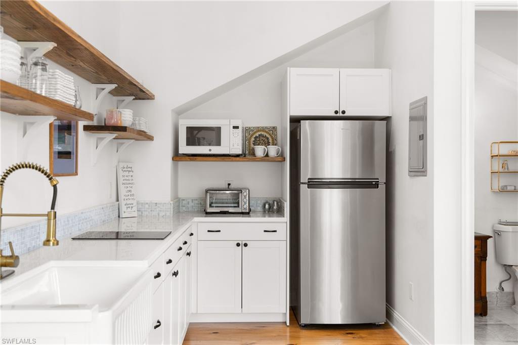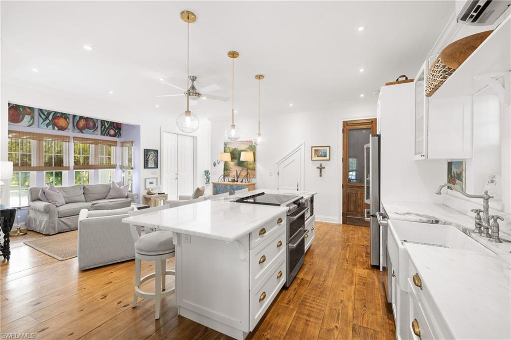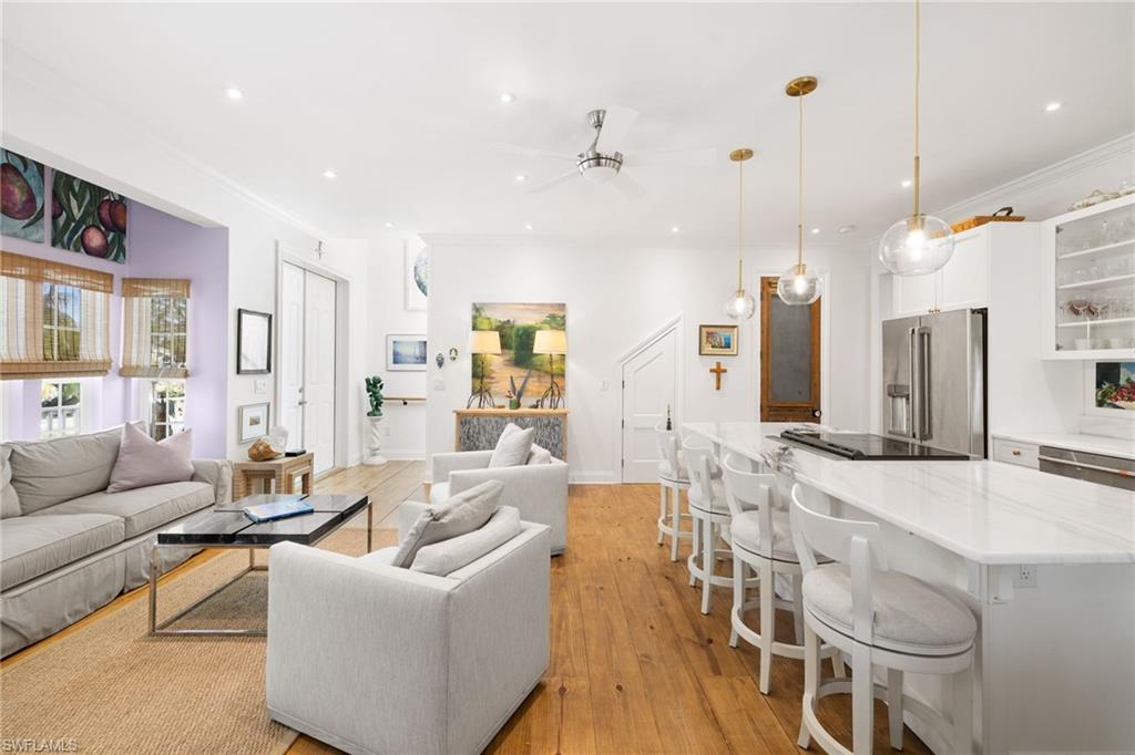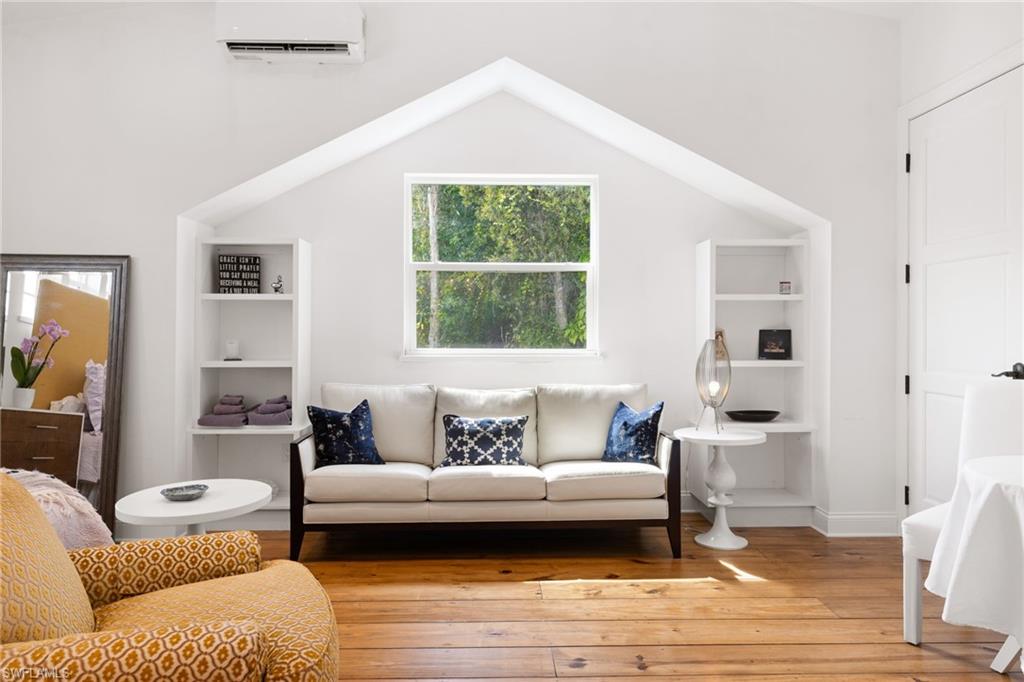 Step into timeless Old Florida charm. Tucked away on a peaceful street, this custom-built Old Florida farmhouse cottage blends country living with the comforts of modern living. Though recently built, its classic clapboard siding, metal roof, and inviting screened and open porches evoke the grace and character of vintage coastal homes. Inside, sunlight dances across Southern Pine wide-plank floors, leading you through an airy open layout that feels both relaxed and refined. The white chefu2019s kitchen gleams with cafu00e9 stainless steel appliances and elegant marble countertops, while handcrafted doors and Carrara marble baths with vintage sideboard vanities add an unmistakable touch of artistry and warmth.With 3,820 total square feet, this meticulously designed home includes two bedrooms and a loft in the main house, plus a detached studio with a full kitchenu2014perfect as a private guest retreat or an income-producing rental. Surrounded by lush Old Florida foliage, this home offers a rare sense of peaceu2014a retreat where time slows down and everyday life feels effortlessly beautiful. Nestled in the vibrant Bayshore area, youu2019ll enjoy proximity to Naples Botanical Gardens, Celebration Park, Bayview Park boat ramp (with access to the Gulf), and 5th Avenue Southu2019s shopping, dining, and beaches. Stroll to 360 Market, Rebeccau2019s Wine Bar & Jazz Club, Ankrolab Brewery, Sugden Park, and local art galleriesu2014all just moments from your door.This is more than a homeu2014itu2019s a lifestyle defined by character, comfort, and the timeless beauty of Old Florida.