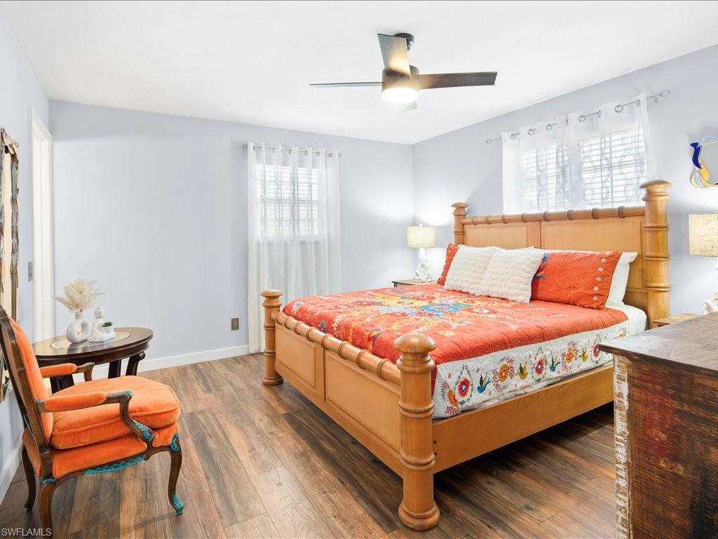 Attention investors!!! It's an Airbnb property since 3 years, fully furnished, with great reviews and repeat guests. Own it and continue earning the rental income. This elevated Florida style home, offering 3 bedrooms 2 bath, nice porch sits on a double corner lot not in an HOA, your possibility to tear it down and build your dream large home or even split the lots and build two homes just like the one listed across the street. Rare opportunity to own in such a great location which is The Bayshore Arts District. Super close to the Botanical Gardens and a public boat ramp. This part of town has been incubating its own little arts scene since the early 80u2019s. Today, the entire area has emerged as an exciting artistic enclave of waterfront dining, live music, art galleries, unique shops and public murals, and this is all just 10 minutes away from the luxurious Downtown Naples!Fully fenced, mature landscaping, amazing backyard, ideally for families and entertainment, dock to fish off, paved area with a built in bonfire for the few cold nights we have and the highlight is a large Tiki hut with water view and an awesome outdoor seating area. Live the Florida lifestyle being outdoors, entertaining and fishing.Many opportunities with this house located in a very fast growing and desirable area for new families offering A- rated school district as well.
