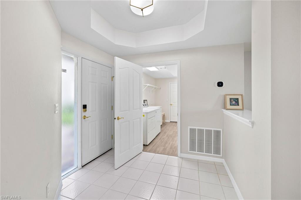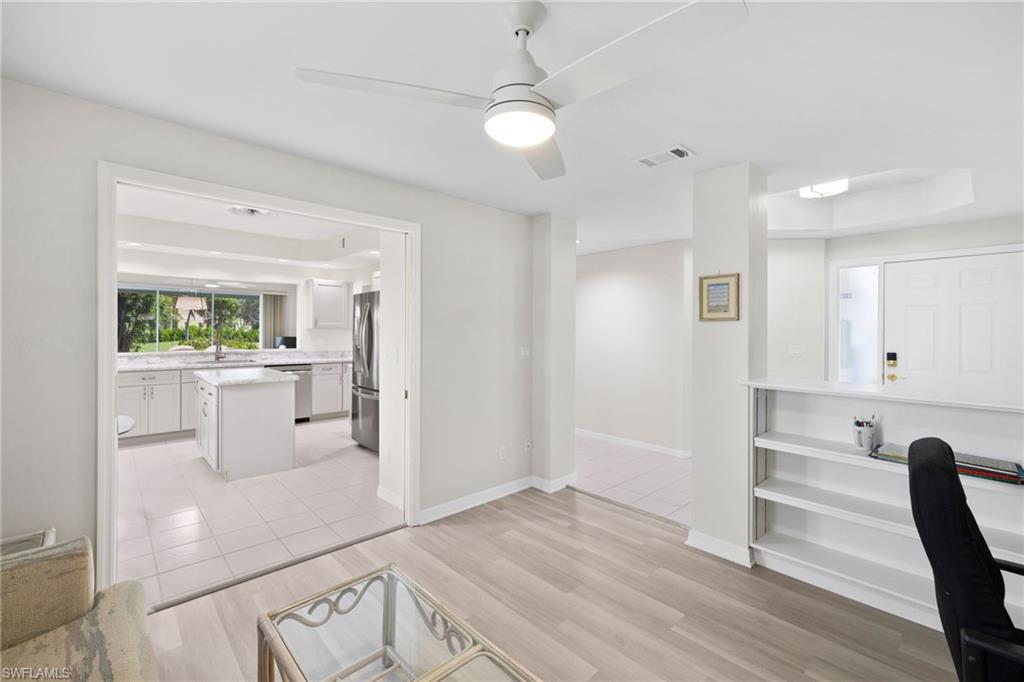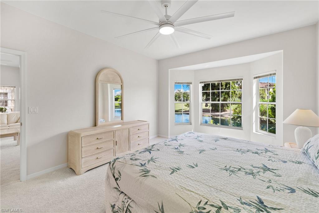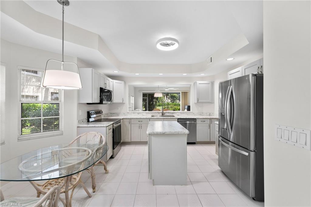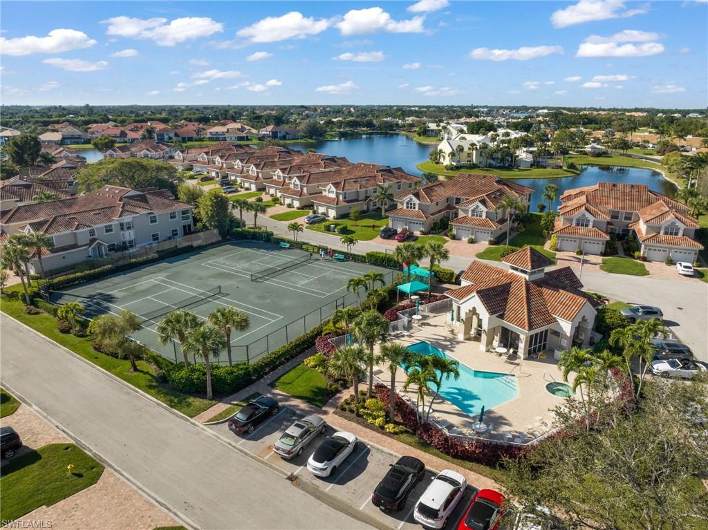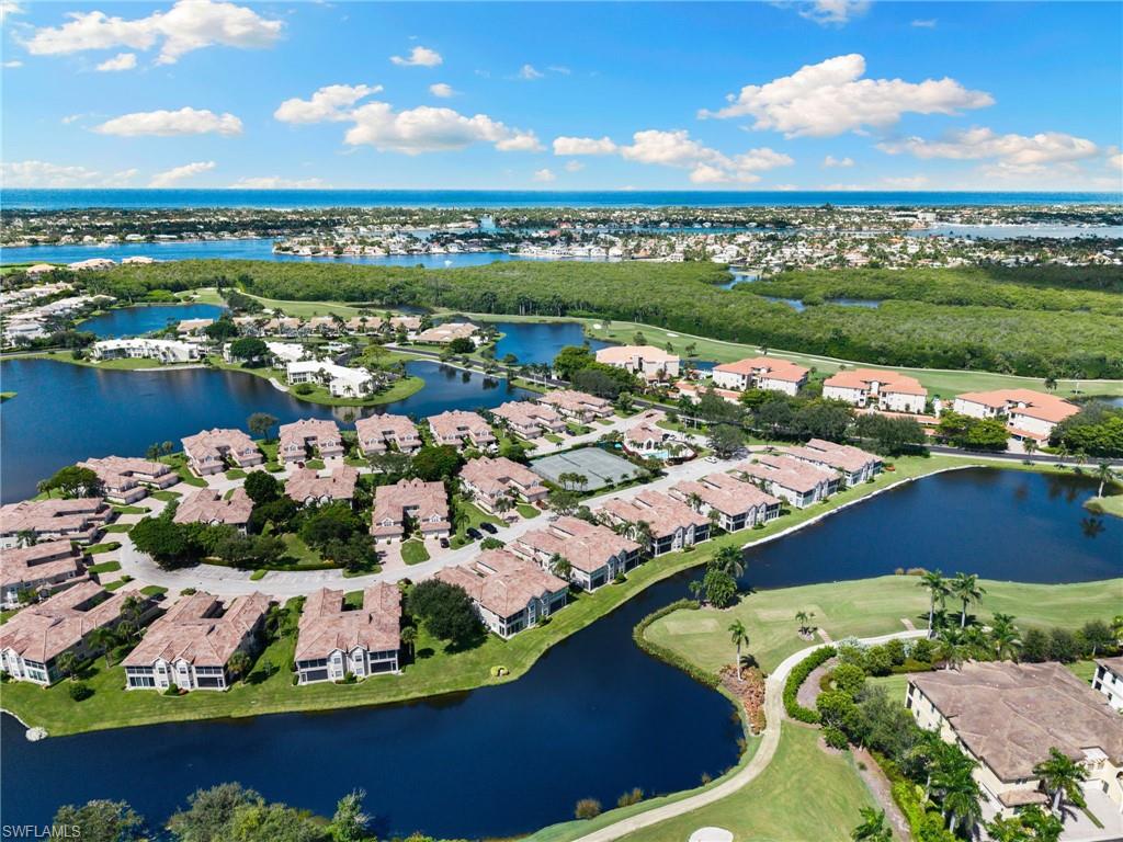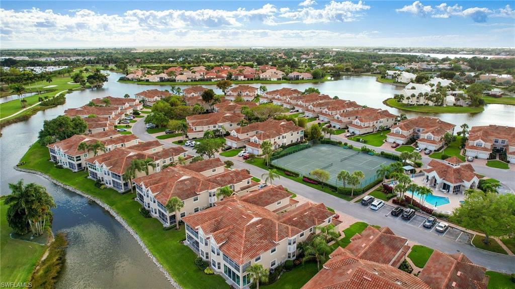 Spacious first-floor coach home in Spinnaker Pointe at Windstar on Naples Bay, offering lake and golf course views. The residence provides over 2,200 sq. ft. of total area, including an attached garage and a large screened lanaiu2014recently upgraded with picture-frame screening for cleaner, more open sightlines. Inside, bright living areas flow naturally to the lanai for easy everyday living and casual entertaining. The kitchen is updated with stainless appliances, white shaker-style cabinetry, and hard-surface counters, while the dining space connects seamlessly to the living room. A thoughtful split-bedroom layout provides comfortable privacy for owners and guests alike. Spinnaker Pointe offers great curb appeal, community tennis courts, community pool/spa, private clubhouse, tropical landscaping and much more.Windstar offers incredible amenities including: Tom Fazio designed golf course, newly redesigned clubhouse with spectacular views of Naples Bay, 72 slip deep-water marina with direct Gulf access in less than ten minutes, clay tennis courts, bocce ball, fitness, Keewaydin Island Beach Club with boat shuttle and private membership.