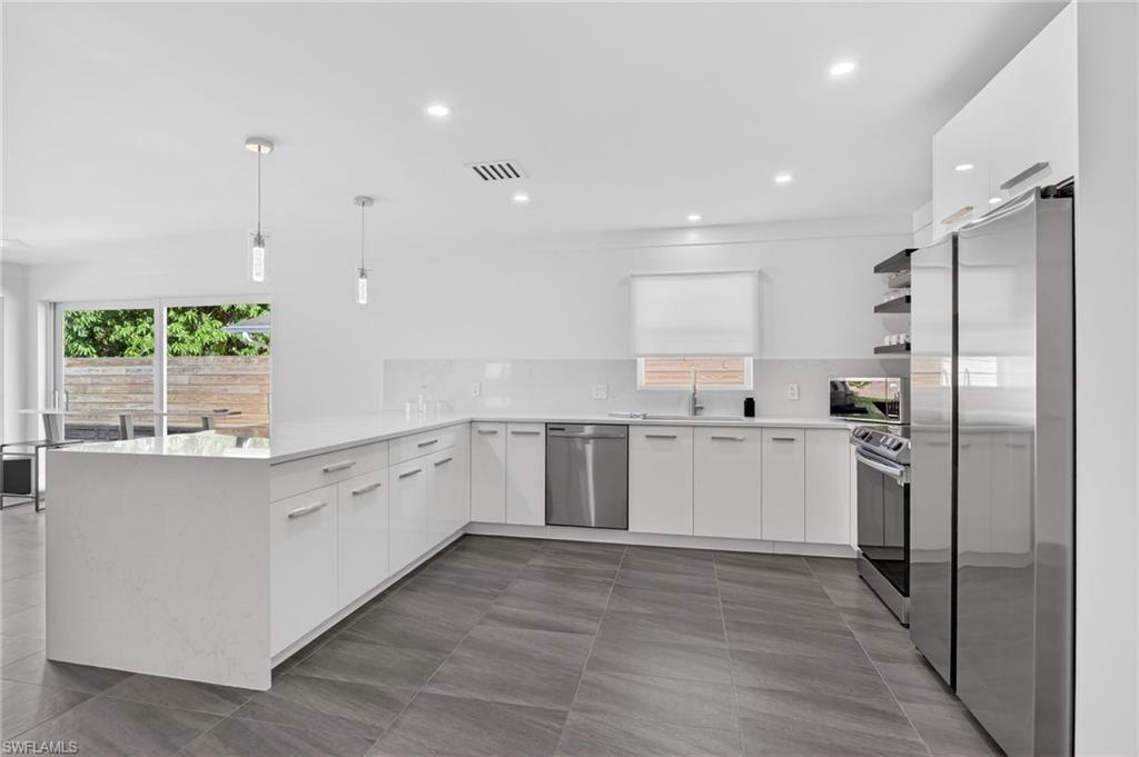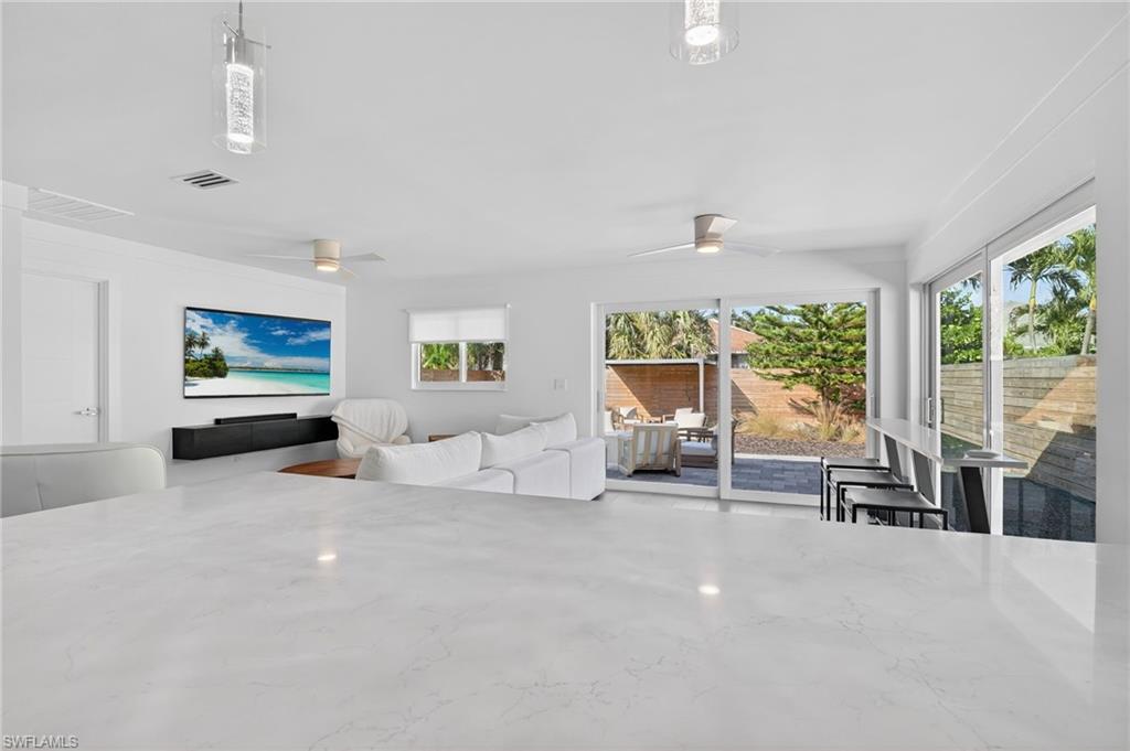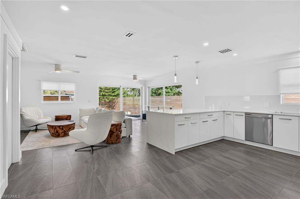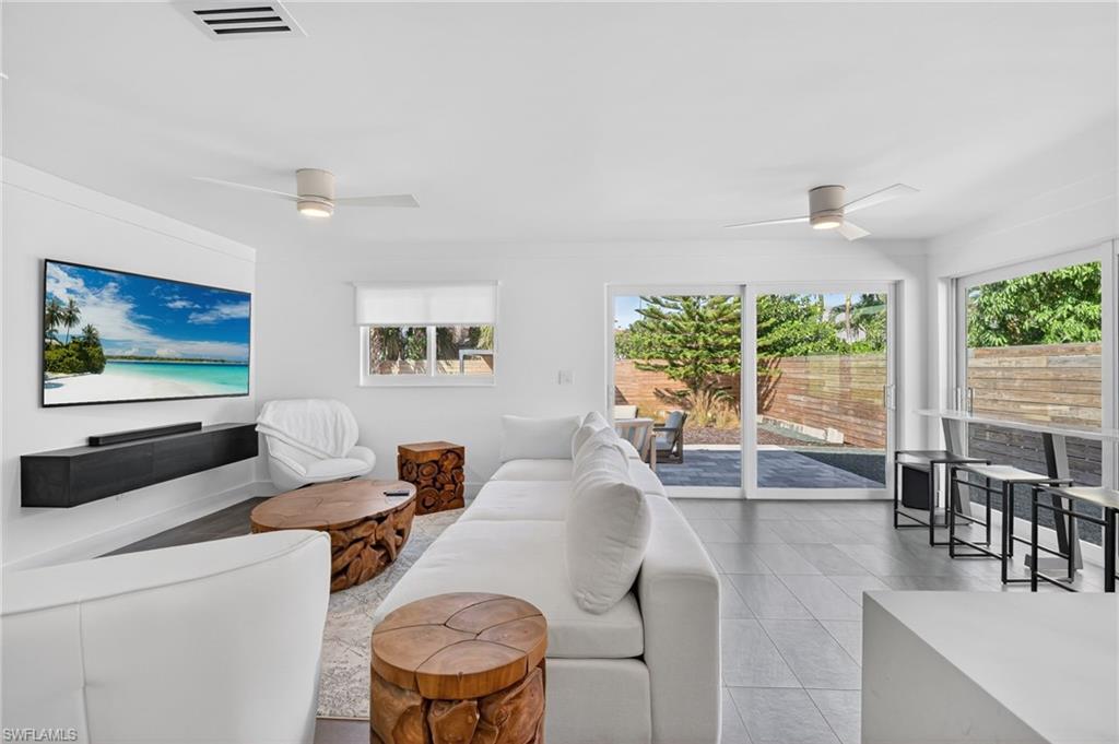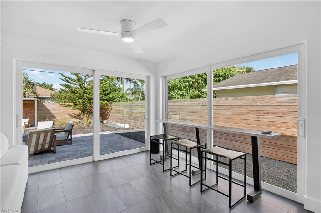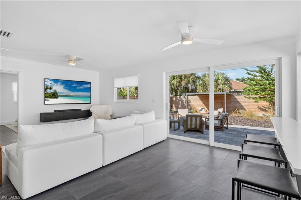 Welcome to a beautifully renovated home where meticulous attention to detail and design are evident in every corner. This property is conveniently located less than a mile away from the beach in FLOOD ZONE X500, offering easy access to the serene waters of the Gulf of Mexico. Whether you prefer a leisurely stroll to the beach, a quick shuttle ride, or utilizing the county-provided beach parking, the choice is yours. The home comes fully furnished and ready for you to move in. Inside, the house boasts ceramic tile floors throughout, adding a touch of elegance and easy maintenance. It features two master suites, each complete with a private bathroom, perfect for a restful retreat. The open floor plan of the home invites family gatherings and entertaining, with large sliding panel doors leading out to a paver patio is also the perfect oasis. This seamless indoor-outdoor transition creates a perfect setting for both privacy and entertaining. The home exudes a contemporary flair that blends well with the surrounding neighborhood, blending charm with modern flair.