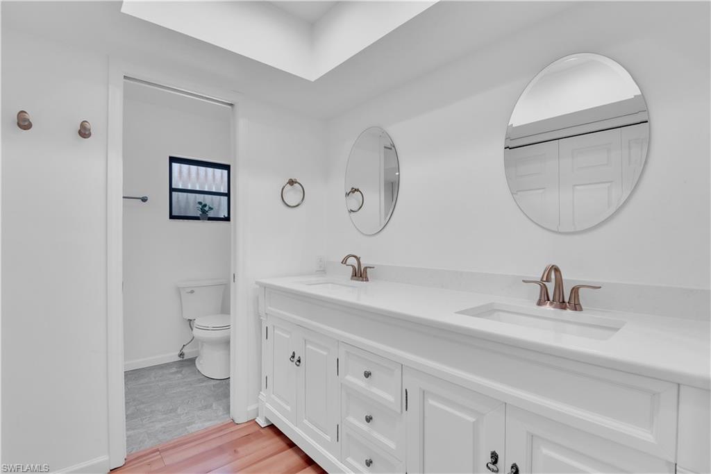 BIG PRICE REDUCTION!! Welcome to your completely updated 3-bedroom, 2-bathroom home, located just minutes from Vanderbilt Beach! NO FLOOD ZONE! NO HOA FEES! BRAND NEW ROOF, HVAC AND WATER HEATER! As you walk through the front door, you'll enter a bright and airy family room that flows seamlessly into the open great room, which includes the living room, dining room, and kitchen. The beach-inspired coastal kitchen features white, and seafoam cabinets paired with wood countertops. Stainless steel appliances and a convenient breakfast bar complete this inviting space. The master bedroom includes an ensuite bathroom for added privacy, while the two additional bedrooms and a shared bathroom are located on the opposite side of the home, perfect for family or guests. Enjoy the spacious lanai and fenced backyard, making this home ideal for families and pets. The one-car garage and long driveway provide ample parking space for up to three vehicles. This centrally located home is within walking distance to several world-renowned popular restaurants, shops, and beautiful first-class beaches, making it an ideal base to explore Naples. This home can be a great winter home for a snowbird or an ideal cash cow for an investor.