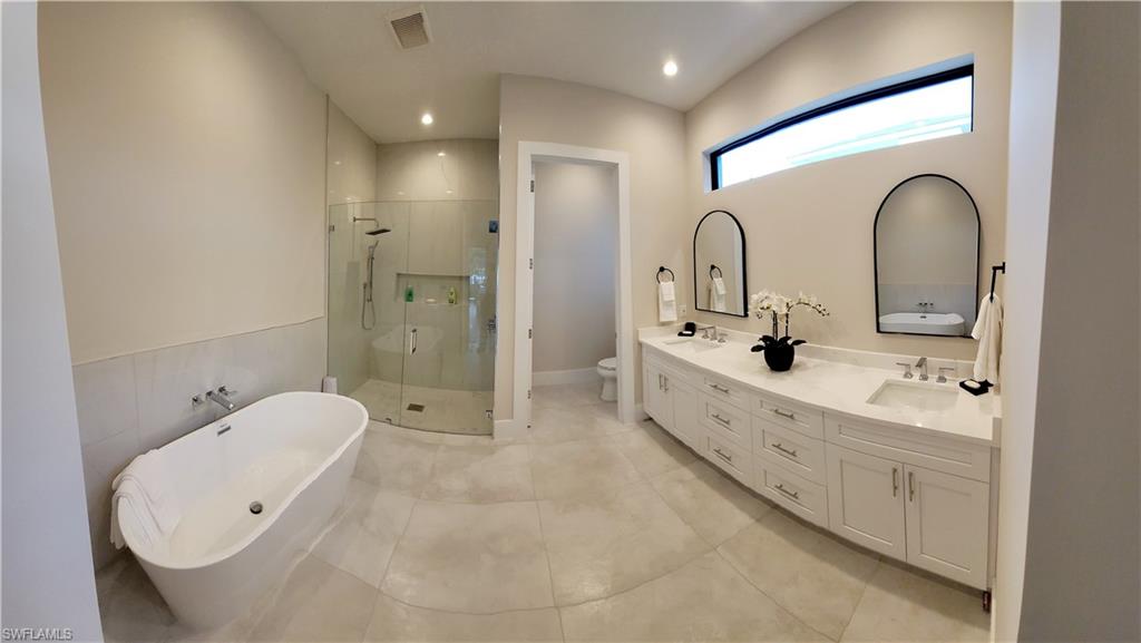 Welcome to `The Turtle Nest.` You cannot rent a closer property in Naples Park to the beach. It is a 7 minute walk to the beach! This is a 2 story new construction home ready for a beach lovers ultimate vacation. Perfect rental for a multi-generational family vacation. This nest features a primary bedroom with a king size bed, his and her walk-in closets and attached bathroom with double vanity and separate shower and soaking tub on the main level. Main level has a kitchen with an island with seating for four and a built in microwave. Kitchen also features high end Kitchenaide appliances. Off the kitchen is the dining room with seating for 8. This home has an open concept so from the kitchen you can see the dining room, living room, and patio. There is a private pool with spa, outdoor kitchen, outdoor shower, and outdoor half bathroom. There is also a laundry room on the main level. Second level has another family room with a wet bar, 3 more bedrooms and 2 full bathrooms. The primary bedroom on the second floor has a large walk-in closet and attached full bathrooms with a king size bed. Mercato shopping plaza is right up the street with Whole Foods Market. The Pavillion shopping plaza is also just off Vanderbilt Beach Road where you can rent bicycles, get ice cream, watch a movie, and eat at a restaurant. All less than a mile away.