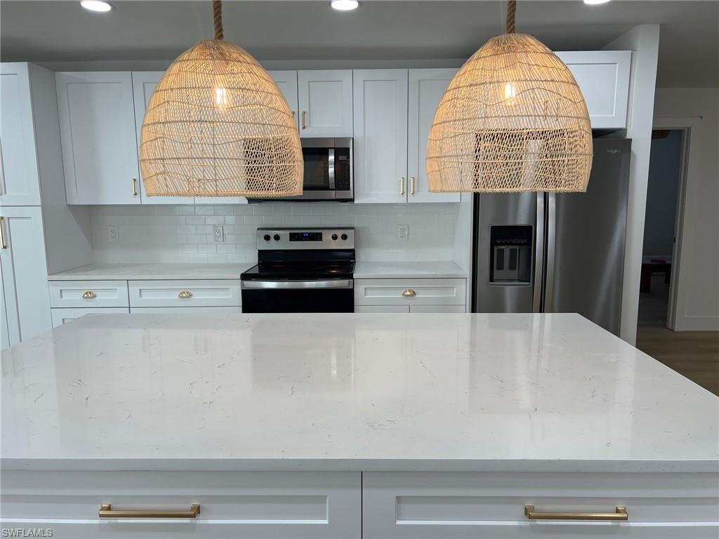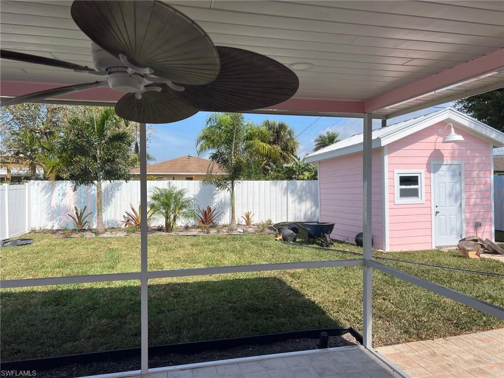 Welcome to your dream rental in Naples Park! Newly renovated 3 bed, 2 bath home with electric fireplace and a cute shed workspace. Everything in this home has been replaced...new windows, new doors, new HVAC, luxury vinyl wood plank flooring, completely reimagined kitchen including a wine cooler. No detailed was overlooked, even an epoxied garage floor. This charming residence combines modern amenities with costal flair, offering an ideal retreat for those seeking luxury and convenience. Home features include: electric fireplace, cute shed, newly renovated, custom lighting, prime location, outdoor living on the screened lanai, garage parking.