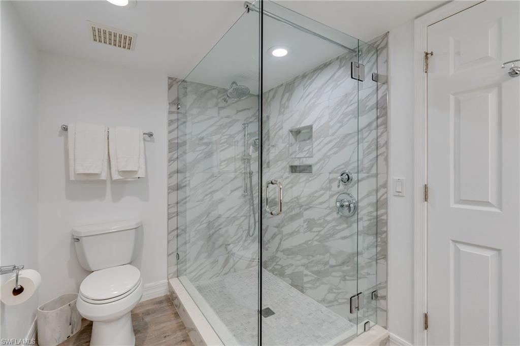This tastefully appointed 2 BR/2BA condo offers nearly 1,500 sq ft of interior living space and 1,784 sq ft with the outdoor living space with two spacious lanais. Located on the quieter north end of Vanderbilt Beach, the 4th-floor residence captures sweeping sunset skies from the main screened wraparound lanai. Enjoy morning coffee on the screened rear balcony while watching dolphins in the bay, with direct access from both the kitchen and guest bedroom.The residence is offered turnkey furnished for easy lock-and-go living. Interior selections by Kelly Smith Interiors of Naples create a relaxed coastal tone. A full renovation in 2018 refreshed the kitchen, baths, and flooring, including new cabinet fronts and countertops, paint, lighting, plantation shutters, and lanai furnishings. Both bedrooms feature custom built-in closets and custom bedding. Electric and select manual storm shutters provide peace of mind. HVAC was replaced in 2017 and the water heater in 2019.The end-unit location adds extra windows and abundant natural light. The split floor plan offers guests a private retreat with their own bath and screened lanai, well separated from the primary suite.The purchase includes a deeded under-building covered parking space, #401, one of roughly 18. Estimated value approaches $75,000. Ownership also provides a second vote at condominium board meetings, offering added influence in community decisions.Vanderbilt Landings reflects proactive management and substantial reinvestment. Recent improvements include painted pool and decking, new roofs in 2022, exterior painting, impact-rated lobby doors, upgraded lighting, drainage and grading in 2024, and nearing completion of the seawall and tennis and pickleball courts. A full perimeter fence is planned for January 2026. Beach renourishment is underway. Annual maintenance fees remain comparatively low, with only a $25 increase for the 2026 fiscal year.Private gated beach access sits directly across the street. Amenities include a pool, bocce, bike storage, barbecue and picnic areas, walking trails, and an active social calendar. With strong management, major improvements complete, and a turnkey interior ready for use or rental, this is an exceptional Vanderbilt Beach opportunity for the 2025 season and beyond.