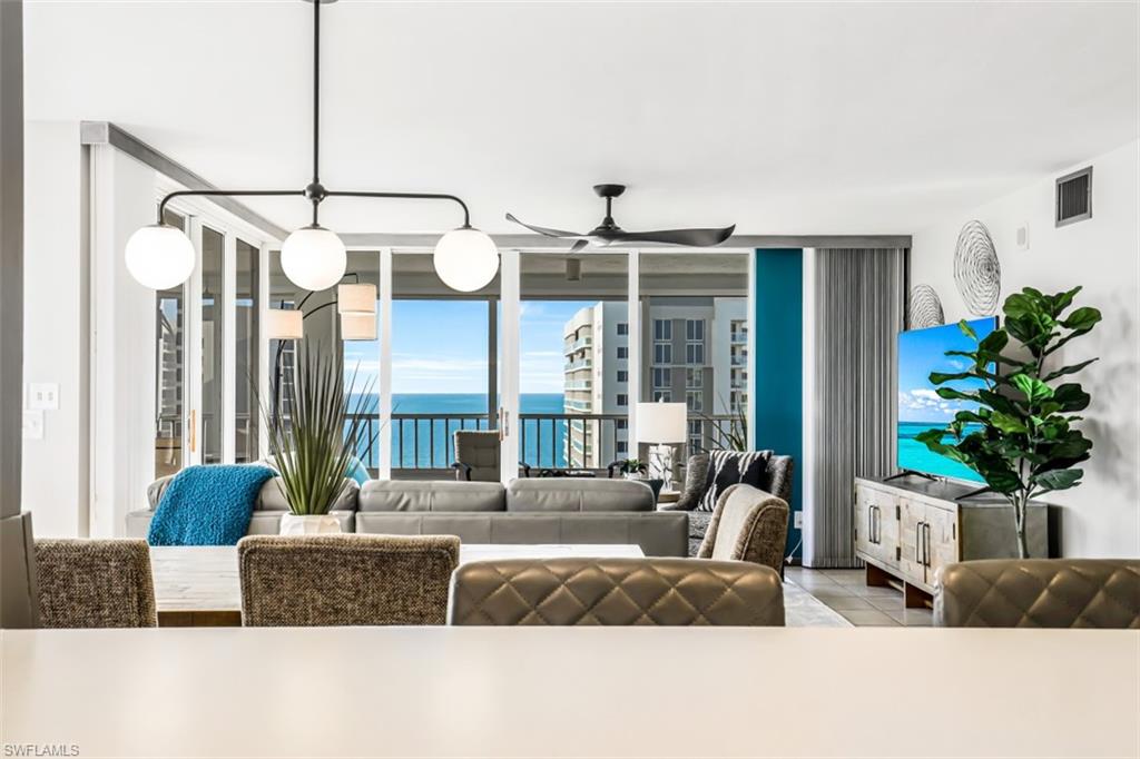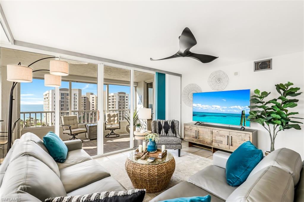 This beautifully renovated 9th floor end-unit condo is awash in natural light and has panoramic views of the Gulf of Mexico and Vanderbilt Bay. This property offers two bedrooms, two bathrooms and two separate lanais, each providing stunning views of the Bay and The Gulf of Mexico. The expansive master suite has views of the Gulf, an updated en-suite bath and doors that extend onto the lanai where you can enjoy stunning sunsets all year round. There are two covered parking spaces where your car or cars are protected from the sun and one uncovered parking space. Delnor-Wiggins State Park is across the street and just a short walk from the community. A deeded walkway allows you private access to Vanderbilt Beach. The large community pool overlooks Vanderbilt Bay where you can relax on the pool deck and watch the dolphins, manatees and boats as they pass by. The other community amenities include a private gated entry, a chickee hut with a grill and tennis/pickleball courts. This property can be rented for 14 days as well as monthly or longer term.
