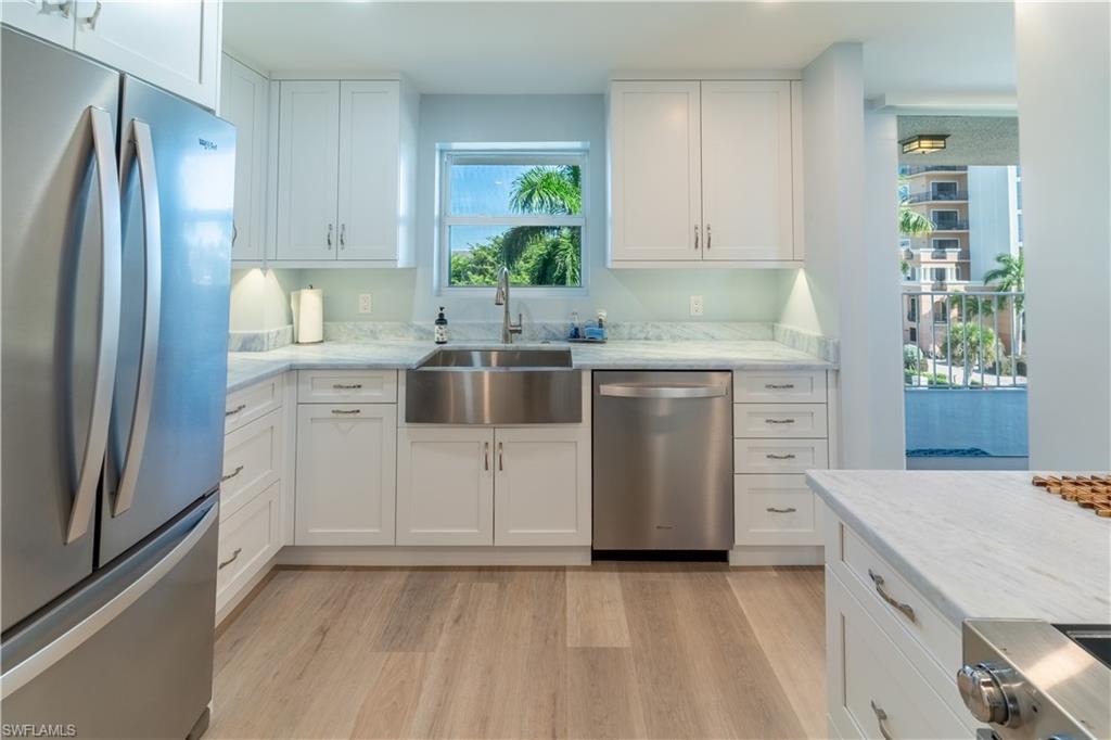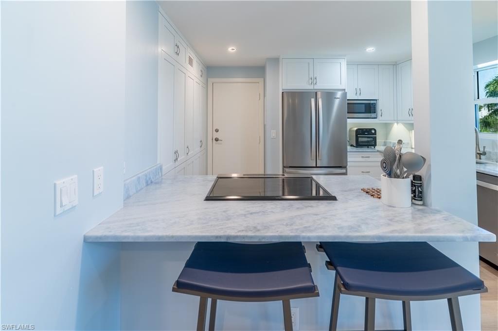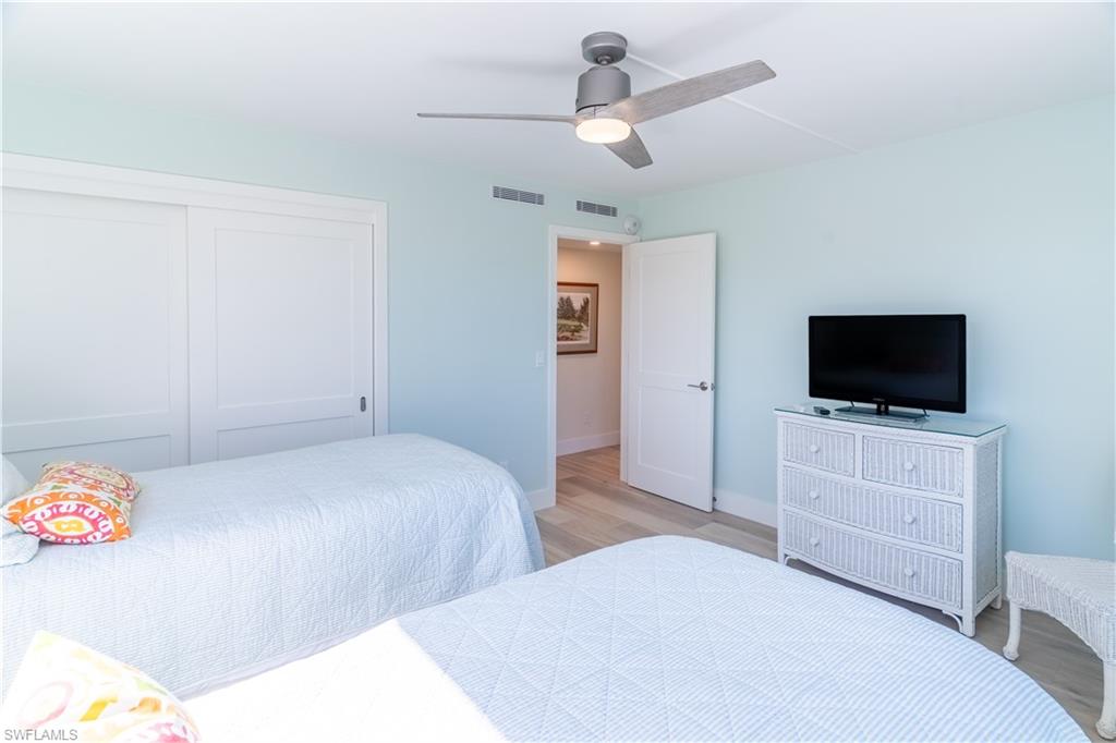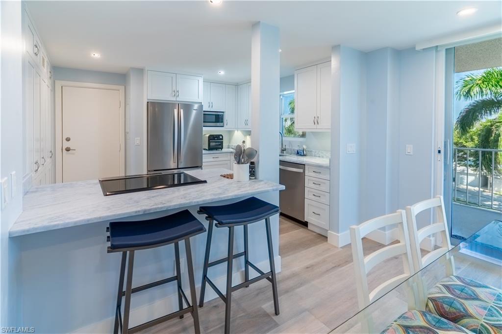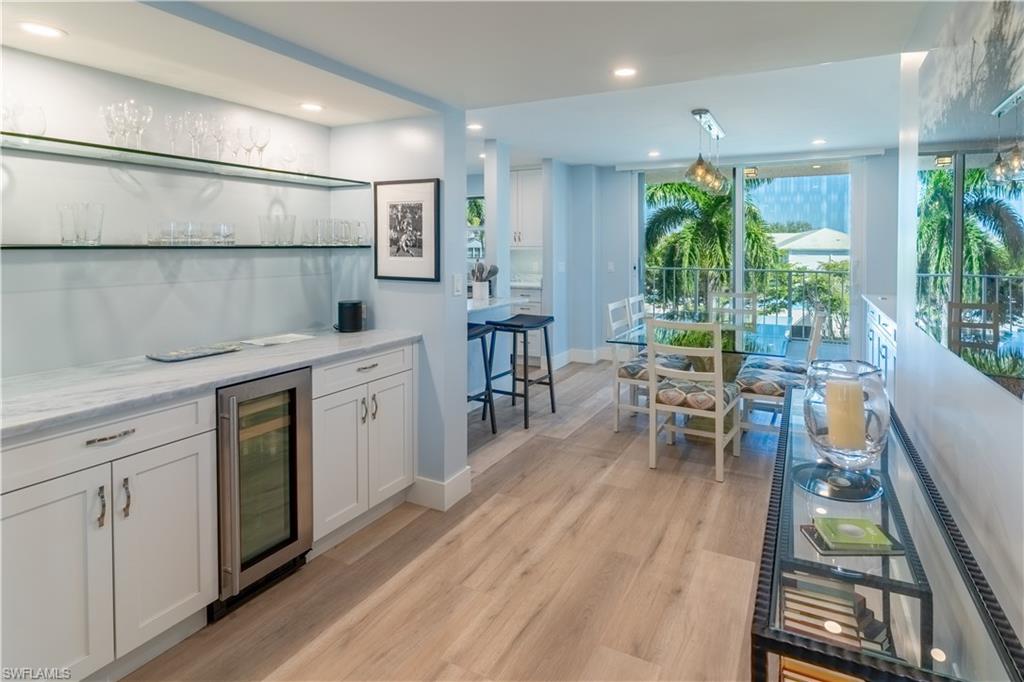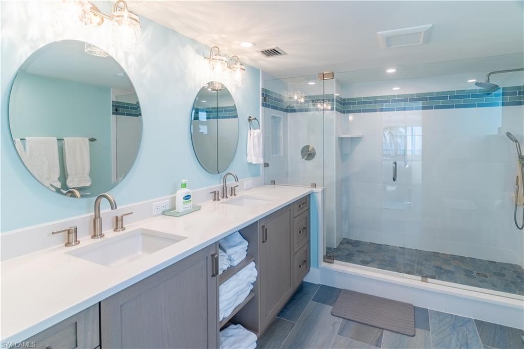 Experience the rare privilege of direct beachfront living on Vanderbilt Beach in this expansive 3-bedroom, 2-bath corner residenceu2014perfectly positioned on one of the most tranquil and private stretches of shoreline. Oriented southwest to capture sweeping Gulf and Bay vistas, this nearly 2,500 sq. ft. residence brings the outdoors in with floor-to-ceiling impact glass (installed 2023) and multiple balconies designed for seamless indoor-outdoor living. Remodeled in 2021, this stunning coastal home captures the sunshine, sand, and sea with exceptional harmony. Sunset skies pour into the oversized great room and primary suiteu2014both facing the Gulfu2014with a wall of sliding glass that frames the horizon like art. From dawn to dusk, natural light fills the home, while additional eastern exposure offers a striking perspective over the Vanderbilt Channel. This open and airy layout is offered turnkey furnished, complete with a separate cabana with a Gulf view (an extremely rare feature), deeded with the property, and a designated storage unitu2014valuable conveniences for beachfront ownership. Vanderbilt Shores, a gated community, recently completed renovations to both the Barcelona and Seville lobbies, delivering an elevated transformation and a fresh, modern coastal luxury aesthetic. Located just one mile from LaPlaya Beach & Golf Resort, The Turtle Club, and The Ritz-Carlton, and minutes from Mercato where world-class dining and shopping await. A genuine one-of-a-kind Gulf-front offeringu2014where the sound of waves, endless sunsets, privacy, and sophistication come together to create a lifestyle that is truly paradise.