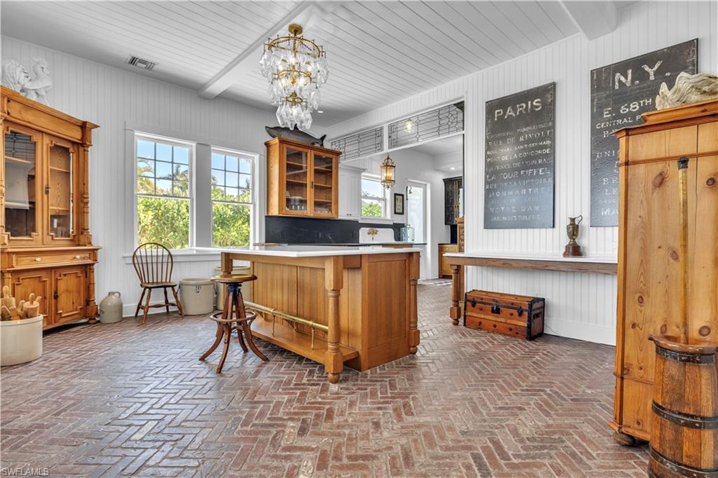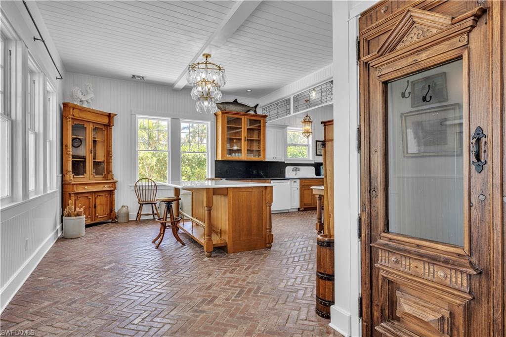 Formerly known as the iconic Bokeelia Tarpon Inn featuring 4 bedrooms, 5 bathrooms and may be purchased TURN-KEY. This historic estate blends early 1900s character with over $1 MILLION in high-end upgrades. PLUS, This home qualifies for 100% Bonus Depreciation on FF&E values!! Located on the northern tip of Pine Island, where the views simply do not get better. Enjoy water views from nearly every window in the home. Primary has Panoramic Views of Charlotte Harbor! With 2 BOAT SLIPS and lift access, youu2019ll have quick and easy entry into Charlotte Harbor, Matlacha Pass, and the Gulf. Stepping into the home, the grand front entrance offers a covered sitting space, a perfect place to soak in the sunshine, coastal breezes, and peaceful waterfront scenery. Vintage charm greets you at every turn, beautifully preserved and enhanced with modern updates. Natural light fills the home, creating a bright and airy feel. The gourmet kitchen is a true showpiece, featuring a Big Chill refrigerator and gas range with unlacquered brass hardware, a designer industrial Zephyr ventilation hood, and a brass pot filler for added convenience. Brick flooring is laid in a classic herringbone pattern, while dramatic soapstone countertops elevate the space. The open-concept living area showcases porcelain tile flooring and a stunning touchstone built-in electric fireplace. Just off the main living area, the laundry room adds convenience. Enjoy garden views from the downstairs guest bedroom. Upstairs, solid wood flooring and custom hardwood stair treads maintain the homeu2019s historic integrity. You will find the expansive primary suite features vaulted ceilings and a cozy revolution, built-in electric fireplace. The spa-inspired primary bath offers water jet-cut marble mosaic tile on the vanity wall, shower inset, and shower floor, a freestanding soaking tub with a Kingston Brass floor-mounted tub filler and hand shower, and custom solid wood cabinetry beneath quartz countertops. Additional Features include: 2 A/C units, spray foam insulation, a walkable attic with additional storage, a high-efficiency tankless water heater, a permanently installed Generac standby generator, a HOOT aerobic septic system, ELECTRIC HURRICANE protection, and Kevlar protection for the upstairs lanai. The exterior is equally impressive with James Hardie shake siding, all-new Azek decking, railings, and stairs, and a custom-built pergola with electric. The oversized lot is landscaped with mature fruit trees along with a coral fountain surrounded by a rose garden. You are just minutes from world-class boating and fishing destinations including Boca Grande Pass and Cayo Costa. Also enjoy the Bokeelia Fishing Pier, charming island dining, Pine Island Center, and everything that makes Pine Island such a desirable coastal community. With breathtaking water views, historic significance, luxury finishes, and unmatched zoning flexibility, this is truly a one-of-a-kind investment and lifestyle opportunity.