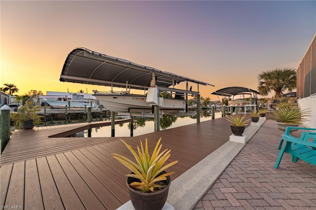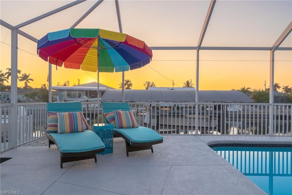 Welcome to laid-back island living in Matlacha Isles, a quaint boating community where the pace is easy and there are no city restrictions to hold you back. This beautifully maintained 3-bedroom, 2.5-bath Gulf-access pool home offers the perfect blend of comfort, function, and classic Florida waterfront charm u2014 ideal for full-time living or your own coastal escape.Set along the 100-foot-wide Star Shell Harbor Canal with no bridge restrictions, youu2019ll enjoy quick access to open water and some of Southwest Floridau2019s best fishing. With 120 feet of seawall, two boat lifts, and room for all your water toys, this property was designed for life on the water. One lift features a captainu2019s walk, canopy, and 60 feet of composite decking; the second includes a concrete cantilever dock and a 10,000 lb lift installed in 2021. Sixteen pilings have been recently cleaned and rewrapped for added peace of mind.Inside, the open and airy split floor plan is filled with natural light and calming canal views from the living room, kitchen and master bedroom. Vaulted and tray ceilings add architectural character, while tile and laminate flooring provide easy coastal maintenance. The kitchen features maple cabinetry, solid surface countertops, and a large three-panel window overlooking the backyard and water u2014 perfect for keeping an eye on the boats while entertaining.The living room includes a wine bar and beverage center with sink and mini fridge u2014 ideal for sunset gatherings. The spacious primary suite offers a jetted soaking tub and an oversized shower for unwinding after a day on the water. A convenient pool bath is located on the lanai for easy access from the heated saltwater pool.Recent upgrades include a 24-gauge Galvalume standing seam metal roof (2020) for exceptional durability and corrosion resistance, and a fully rescreened and resecured pool cage (2022). Concrete block construction with concrete stucco lap siding ensures low-maintenance ownership.An additional lot u2014 currently under the same strap number u2014 provides extra space for parking, boat trailer storage, or future building possibilities.Western exposure delivers unforgettable sunset skies, and youu2019re just 15u201320 minutes by boat to Matlacha Pass and open Gulf waters for snook, redfish, and trout fishing. Enjoy live music and waterfront dining at Miceliu2019s Restaurant or take a short drive to nearby shopping and everyday conveniences.If youu2019re ready for salty breezes, boat days, and Old Florida charm, this Matlacha Isles waterfront home is ready to welcome you. House had no water from hurricanes inside living area of home. Current Flood Policy is $1,974 per year and renews 11/2026.