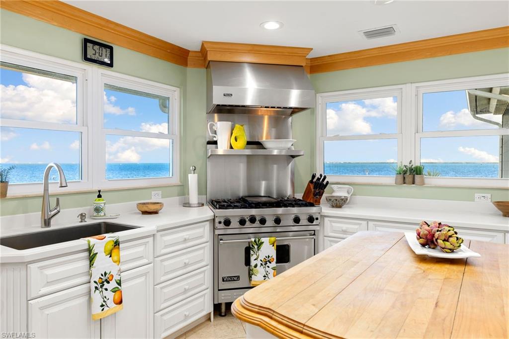 With unobstructed views of the bay, perfectly framed by the tropical landscape, this residence embodies the essence of waterfront living. Upon entering the main level, you will be greeted by an abundance of natural light and vistas complimenting the fireplace in a harmonious blend of coastal and classic design. Entertain family and friends in the formal dining area or the main level balconies overlooking your backyard as dolphins swim in the background. The kitchen boasts views of the bay and offers plenty of cabinet and counterspace, a gas range and a wet bar that connects the kitchen to the family room. The primary quarters offer two walk in closets and a spacious bedroom surrounded by mature landscaping that integrates with the natural beauty of the surroundings. The well appointed guest bedrooms, one on the main level and the other on the first floor, award your guests with privacy. On the first floor you'll find a separate sitting room, a den (which the owners used as an exercise room) and a laundry room with an extra refrigerator and sink. From the office and recreation rooms you can step outside onto the expansive patio, where the beauty of coastal living truly comes to life. Sip cocktails as you watch boats glide across the bay, or indulge in alfresco dining under the pergola covered in blooming flowers. This waterfront setting offers endless opportunities for outdoor recreation, from kayaking and paddleboarding to fishing and birdwatching. The boating community of St. James City is conveniently located a short boat ride away from the Sanibel Causeway and beaches to the south and to the north, through Pine Island Sound, to the world famous Cabbage Key, Useppa Island, and Boca Grande pass. Whether appreciating some of the most pristine natural habitats in SWFL, sport fishing for tarpon or bar hoping by water, the options are endless