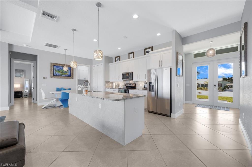Welcome to your boateru2019s dream home in St. James City. This stunning, solid custom-built waterfront residence offers 3 bedrooms, 3 bathrooms, and 2 versatile dens, thoughtfully designed for luxury, comfort, and effortless entertaining. One den can easily serve as a 4th bedroom, while the other is ideal for a home office or flex space. The well-planned layout provides privacy with two en-suite bedrooms and showcases an open-concept design with tile flooring throughout and breathtaking water views. The kitchen is equipped with stainless steel appliances and well-appointed counter space, making it perfect for hosting family and friends. Spacious walk-in tiled showers and generous closet space enhance both style and functionality. If youu2019re looking for a newer single-family home that is high and dryu2014without the worry of stairsu2014then this is it. Designed all on one level, this home delivers easy living and peace of mind. Step outside to your private outdoor oasis, where youu2019ll enjoy a sparkling saltwater heated pool, expansive open lanai, and plenty of room to relax or entertain. The built-in grill, bar, and refrigerator make outdoor dining effortless, while the open sun deck invites you to soak up the Florida sunshine. For boating enthusiasts, this property is truly exceptional, featuring two boat lifts (25,000 lb and 7,000 lb), a fish-cleaning station, and extra side parking ideal for boat trailers or an RV. Located just minutes from open water, this home offers the ultimate waterfront lifestyle. A one-of-a-kind retreat, move-in ready, with no water intrusion from any storms and a transferable flood policy. This is waterfront living at its finest~ready to welcome its new owners.