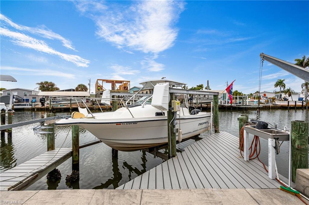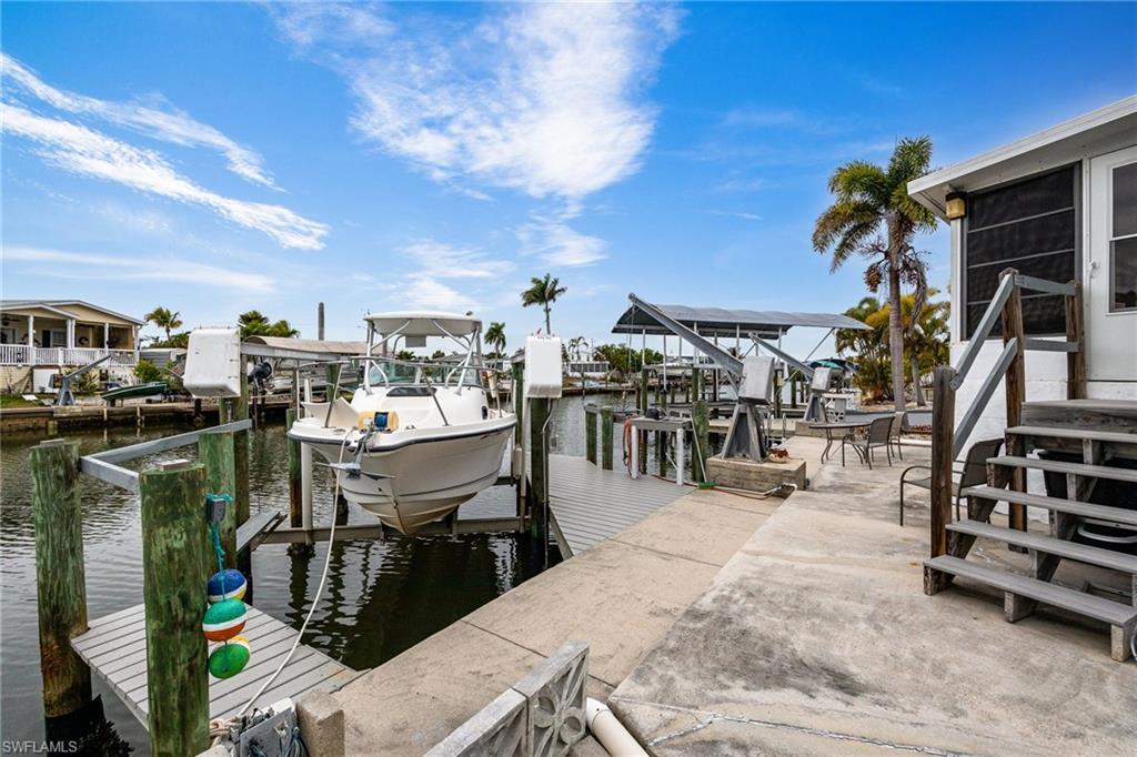 Island Paradise with Direct Gulf Access u2013 No Bridges!Welcome to your slice of paradise in St. James City, where the island vibe meets waterfront luxury. This charming manufactured home offers direct Gulf access with no bridges, making it a boateru2019s dream! Launch your boat from your private dock and head straight to the open waters on the Gulf of America for world-class fishing, cruising, and island hopping. Easy boating access to Sanibel, Captiva, Fort Myers Beach, and Boca Grande!Enjoy the laid-back lifestyle:Golf cart to local restaurants, bars, and live music venues.Surrounded by tropical scenery and a friendly community,Perfect for boating enthusiasts and anglers alike.Live the ultimate waterfront lifestyle in St. James City with this turnkey furnished Palm Harbor Double Wide manufactured home (built in 1997) offering direct Gulf access with no bridgesu2014a true boateru2019s dream!Property Highlights:Boating & Fishing: 7,000 lb boat lift with new motors and switches, 4,000 lb davits, syntactic boat dock, and concrete seawall with a spacious patio area. Includes a double-bowl stainless steel fish cleaning station with water and hose for your fresh catch.Outdoor Living: Covered walkway to the porch, landscaped stone yard (no grass to cut), and a 2.5-car wide driveway for all your toys. Attached utility room with workbench and shelving.Home Features:2 bedrooms /2 full baths, 1,278 sq. ft. plus a 150 sq. ft. sunroom with a convertible sofa (third bed) no seeum screens, tinted vinyl windows and blinds, and an orbital fan.Cathedral ceilings throughout, central air replaced in 2024, and 3 ceiling fans.Kitchen with white cabinets, double bowl stainless steel sink, microwave, dishwasher and large double door fridge.Indoor laundry with shelving including an electric washer and dryer.Good sized master bedroom with large mirrored double door closet.Updated bathroom fixtures.Strapped and anchored to ground, 2x6 construction for durabilityMetal roof and vinyl siding for low maintenance.No smoking or pets. Owners are snowbirds so home was only used a few months each year!Enjoy the laid-back island vibeu2014boating, fishing, and dining just minutes away. Whether youu2019re looking for a seasonal retreat or a full-time residence, this home delivers everything you need for Florida waterfront living.