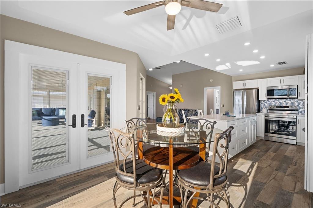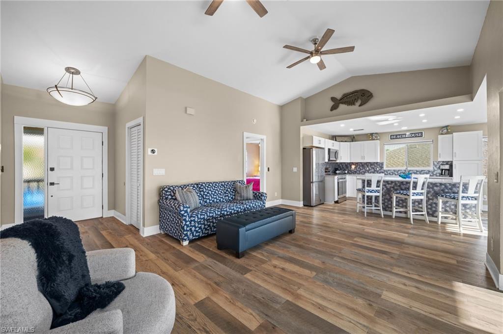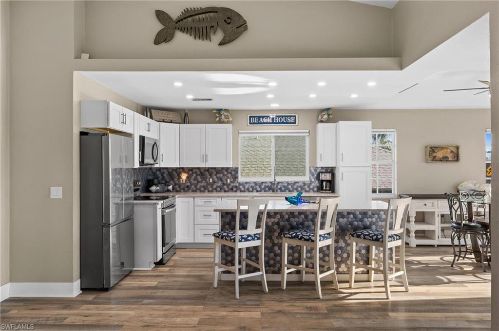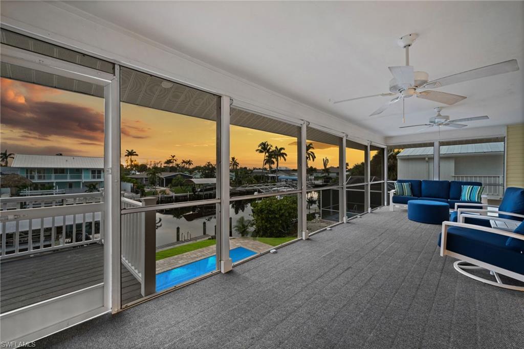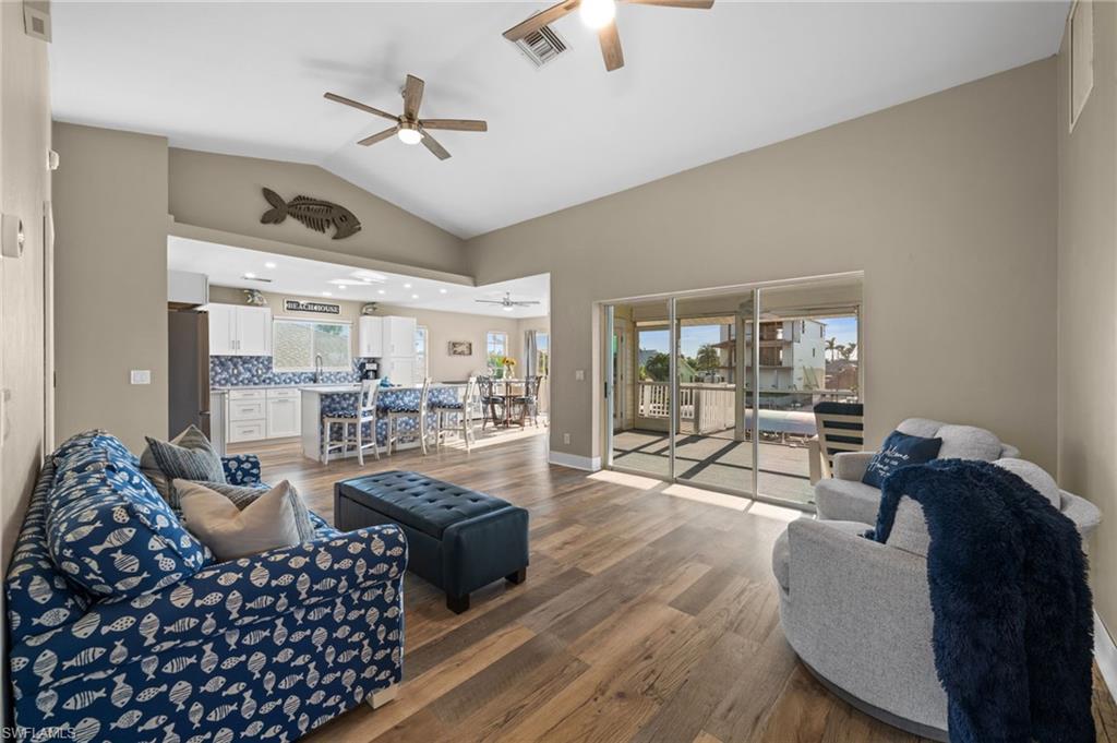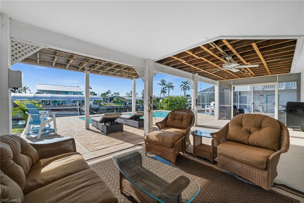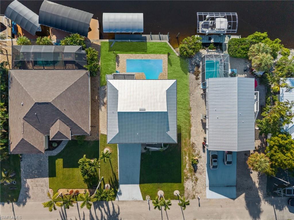 Whimsical Island Living in St. James City! Dive into your own paradise with a brand-new custom poolu2014complete with a sun shelf, LED bubblers, glow lighting, and a saltwater system. Add direct Gulf access and an 8K boat lift with canopy and composite captainu2019s walk dock, and adventure by water is just minutes away. From your dock, itu2019s a quick ride to the open bayfront and the sandy beaches of Sanibel, Captiva, Cayo Costa, and Boca Grande, along with the world-famous fishing grounds of Pine Island Sound. Fresh landscaping enhances the tropical curb appeal, while inside, vaulted ceilings and abundant natural light create an airy, open feeling. Despite its cozy island footprint, each bedroom easily fits a king-size bed, offering a comfortable and well-designed layout. The 2024 remodeled kitchen shines with quartz countertops, white raised-panel cabinets, a center island, and stainless-steel appliances. Sliders from the great room open to a spacious screened lanai, while an open-air balcony off the kitchen is perfect for morning coffee or sunset cocktails. The primary suite is a private retreat with lanai access, two closets (including a walk-in), and a spa-like bath. Guests enjoy their own wing with a pocket slider for added privacy. Nearly every room whispers water views, reminding you that the Gulf is never far. On the lower level, a second screened lanai, shaded gathering space, and two flexible storage rooms offer room to expandu2014perfect for an outdoor kitchen, game area, workshop, or guest hideaway. Thereu2019s also covered parking below with plenty of space for your golf cartu2014essential for exploring the golf cartu2013friendly streets of St. James City. With updates including a new roof (2023), Pergo flooring, and reinforced seawall, this home combines peace of mind with the ultimate in waterfront fun. From sun-up to sun-down, this home blends updates, whimsy, and island charmu2014a tropical retreat made for living.
