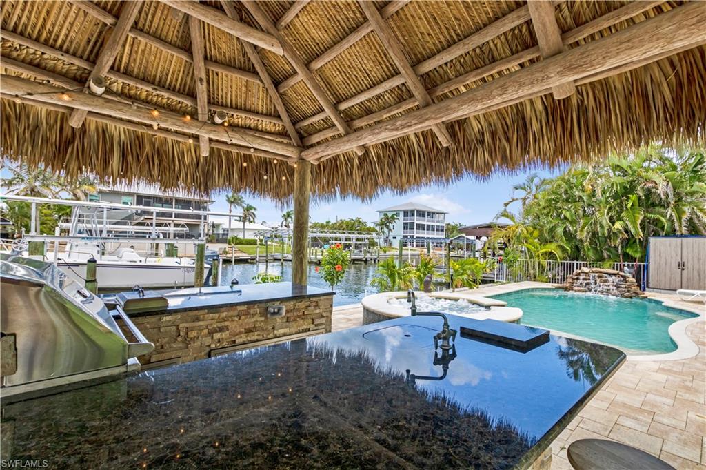 Price is flexible! Welcome to luxury island living at this beautifully remodeled 3-bedroom, 3-bath waterfront home in St. James City. Every detail has been updated with no-expense-spared finishes, including a gas range, high-end appliances, premium flooring, and elegant coastal design throughout. The spacious open layout offers abundant natural light, high ceilings, and seamless flow between the living, dining, and kitchen areas. Outdoors, enjoy your own tropical retreat featuring a large outdoor kitchen with built-in gas grill beneath a custom tiki hut, perfect for entertaining by the water. A wet slip is available for guest boat use, making this property a true boateru2019s paradise. The private in-ground pool and spa are surrounded by a screened lanai with plenty of space for lounging or dining al fresco. Additional highlights include impact windows, updated systems, and thoughtful upgrades throughout. Located minutes from marinas, waterfront dining, and the open Gulf, this home is offered mid-November 2025 through April 2026. Pets allowed upon approval. No smoking; taxes, and cleaning fee apply.