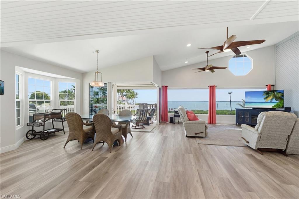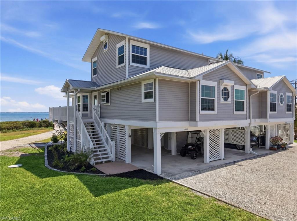 BAYFRONT!Imagine ending your day with the sky stretching wide over San Carlos Bay, the lights of the Sanibel Bridge shimmering in the distance, and nothing but open water and gentle breeze in front of you. Life here feels calm, expansive, and deeply connected to the outdoors.This home is perfect for someone who truly loves being on the water. Step outside to your dock and 10,000 lb boat lift (with water and electric), ready for morning fishing runs, sunset cruises, or quick trips to Sanibel and Cayo Costa. Youu2019ll enjoy fast access to the Intracoastal Waterway and deep-water Gulf access just minutes away.From the living area and screened balcony, the bay becomes part of your daily rhythm u2014 shifting light, passing birds, and the gentle movement of the tide. Zero-corner sliding glass doors open the main living space completely to the outdoors, while electric screens can be raised or lowered for comfort, creating a seamless indoor-outdoor experience. Just steps away, an observation area offers the perfect spot to relax or wade into the water.Inside, the home is beautifully updated. The kitchen features premium appliances including a Bosch refrigerator and dishwasher, Wolf microwave and stove, a pot filler, and a stylish Kraus farmhouse sink.The main living level includes an open living space, the primary suite, and an elevator that runs from the carport entry level directly to the main floor for everyday convenience. The primary suite offers a spa-like bath with a clawfoot soaking tub, walk-in shower, and large closet. Upstairs, youu2019ll find two additional bedrooms and a spacious bath with a custom walk-in shower.The ground level provides valuable flex space with epoxy flooring and EnduraFlood panels u2014 ideal for storage, hobbies, or a game room. Electric storm shutters add extra convenience and peace of mind.This turnkey home is located in St. James Place, a beautifully landscaped community of just 20 residences featuring a heated pool and spa. Tucked away on the southern tip of Pine Island, this is more than a home u2014 itu2019s a true waterfront lifestyle.Come see how different everyday life can feel when the bay is right outside your door.