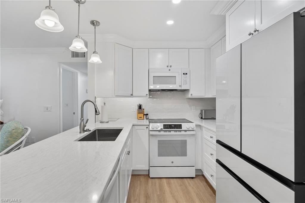 Welcome to your island retreat at Sanibel Moorings, a beautifully landscaped East end gulf-front community known for its lush botanical gardens and resort-style amenities. This 2-bedroom, 2-bath direct gulf-front condo offers easy beach access and a bright, open layout designed for comfort and relaxation. Step inside to find a spacious, recently renovated living and dining area that flows seamlessly to the larger beachfront screened lanai. With new coastal modern furnishings and du00e9cor, the condo feels bright and fresh. The kitchen is well-appointed with new appliances, white cabinetry, and quartz counters, making meal prep a breeze. Both bedrooms provide plenty of space for family and guests, while the primary suite features private access to the second lanai and an en-suite bathroom with an oversized shower and double vanity. Sit on either porch and take in your private beach views while listening to the waves roll on shore. Sanibel Moorings is beloved for its unmatched amenities, including tropical gardens, two heated pools, tennis and pickleball courts, fitness center, boat dockage, onsite rental office, and direct beach access. Whether youu2019re seeking a personal getaway or a strong rental investment, Unit 121 offers the best of island living and easy beach access. Experience the charm of Sanibelu2014where world-class shelling beaches, bike paths, and island dining are all within easy reach.