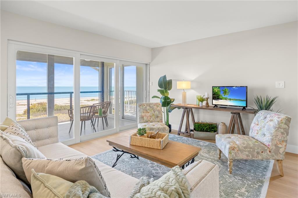 Welcome to your dream luxury condo with direct, stunning vistas of the Gulf. You cannot beat this view. Sunset South is a low density complex with beach access, a resort style pool, and brand new landscaping. 5C is on the top level of the closest beachfront building and has its own garage space and storage. This unit has been completely redone from top to bottom. All new stainless steel appliances, luxury vinyl flooring, new windows, brand new electric hurricane shutters. New roof for the building. Expertly staged and furnishings are available for purchase separately.
